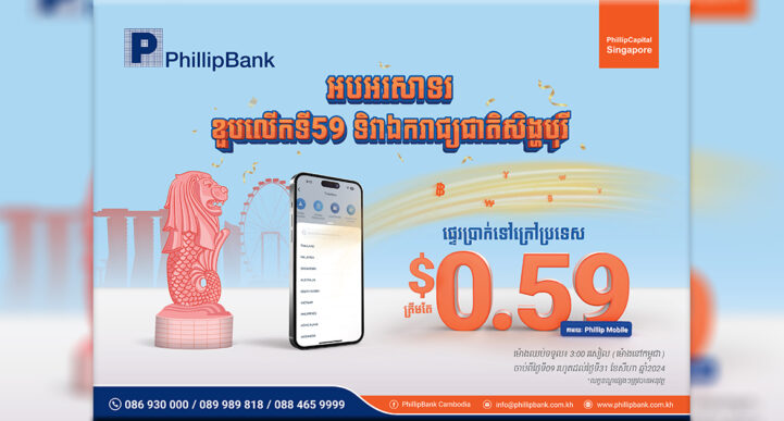 ធនាគារ ហ្វីលីព ដែលជាធនាគារពាណិជ្ជមានភាគទុនិកជនជាតិសិង្ហបុរី នៅកម្ពុជា បានផ្ដល់ជូននូវការធានាសុវត្ថិភាពសម្រាប់អតិថិជន មិនត្រឹមតែចំពោះការសន្សំប៉ុណ្ណោះទេ។ អតិថិជន ក៏អាចផ្ញើ ឬទទួលប្រាក់ពីបរទេសប្រកបដោយទំនុកចិត្តខ្ពស់ផងដែរ។ មិនត្រឹមក្លាយជាជំនួយការពិសេសសម្រាប់អតិថិជនរបស់ខ្លួនទេ ធនាគារ ហ្វីលីព ថែមទាំងមានការផ្ដល់ជូនអស្ចារ្យថ្មីមួយទៀត ។ អ្នកទាំងអស់គ្នាចំណាយត្រឹមតែ 0.59 ដុល្លារ ប៉ុណ្ណោះ ចាប់ពីថ្ងៃទី 09 ខែសីហា ដល់ថ្ងៃទី 31 ខែសីហា ឆ្នាំ 2024 ដើម្បីផ្ទេរប្រាក់ទៅកាន់ប្រទេសទាំង ៩ តាមរយៈកម្មវិធីធនាគារចល័ត Phillip Mobile។ ការផ្តល់ជូននេះ គឺដើម្បីអបអរ