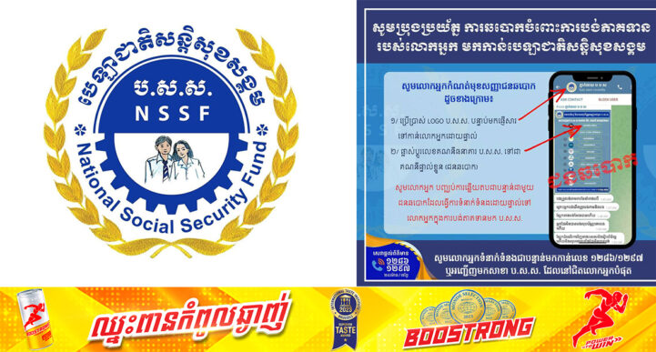 យោងតាមការចុះផ្សាយរបស់ ក្រសួងព័ត៌មាន បាន្យដឹងថា បេឡាជាតិសន្តិសុខសង្គម សូមជូនដំណឹងដល់សាធារណៈជន ពិសេសបងប្អូនដែលសមាជិក ប.ស.ស. ទាំងអស់មេត្តាជ្រាបថា ថ្មីៗនេះមានករណីឆបោកទៅលើសមាជិក ប.ស.ស. តាមរយៈបង់ភាគទាន ដោយជនឆបោកបានផ្ញើសារទៅសមាជិក ប.ស.ស. ដោយផ្ទាល់ និងបានបញ្ចុះបញ្ចូលឱ្យសមាជិក ប.ស.ស. បង់ប្រាក់មកគណនីធនាគាររបស់ខ្លួន។ អាស្រ័យហេតុនេះ សូមបងប្អូនមេត្តាប្រុងប្រយ័ត្នឱ្យបានខ្ពស់ ចំពោះការឆបោករបស់ក្រុមជនអនាមិកទាំងនេះ ចៀសវាងខាតបង់ប្រាក់ ឬទ្រព្យសម្បត្តិផ្សេងៗ។ សូមបញ្ជាក់ថា សម្រាប់បងប្អូនសមាជិក ប.ស.ស. ជាបុគ្គលស្វ័យនិយោជន៍ រាល់ពេលបង់ភាគទានមក ប.ស.ស. ត្រូវរកមើលពាក្យ “ប.ស.ស. បង់ភាគទានស្វ័យនិយោជន៍” ឬជាភាសាអង់គ្លេស “NSSF Self
