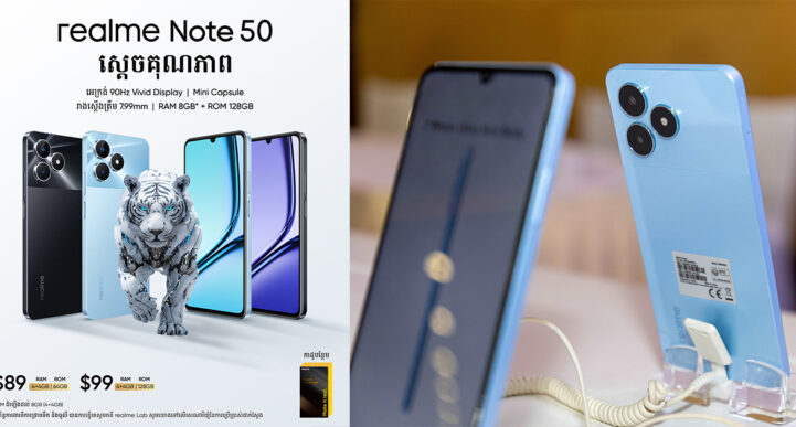 នាថ្ងៃទី 23 ខែកុម្ភៈ ឆ្នាំ2024 កន្លងទៅថ្មីៗនេះ ក្រុមហ៊ុនស្មាតហ្វូន realme ដែលជាប្រេនស្មាតហ្វូនល្បីខ្លាំងលើពិភពលោក បានរៀបចំកម្មវិធីប្រកាសបង្ហាញជាផ្លូវការនូវស្មាតហ្វូនស៊េរីថ្មីបំផុត គឺ realme Note 50 ដែលជាស្តេចគុណភាពថ្មី ក្នុងតម្លៃពិសេសនឹកស្មានមិនដល់គឺ តម្លៃ 89$ ចំពោះ Ram (4GB+4GB/64GB) និង តម្លៃ 99$ ចំពោះ Ram (4GB+4GB/128GB)។ កម្មវិធីនេះបានរៀបចំឡើងយ៉ាងអធិកអធម្មនៅសណ្ឋាគារលំដាប់ផ្កាយ៥ សុខា ដោយមានការអញ្ជើញចូលរួមពីសំណាក់ដៃគូហាងទូរស័ព្ទ realme ទូទាំងប្រទេសផងដែរ។ លោក Allen Choi