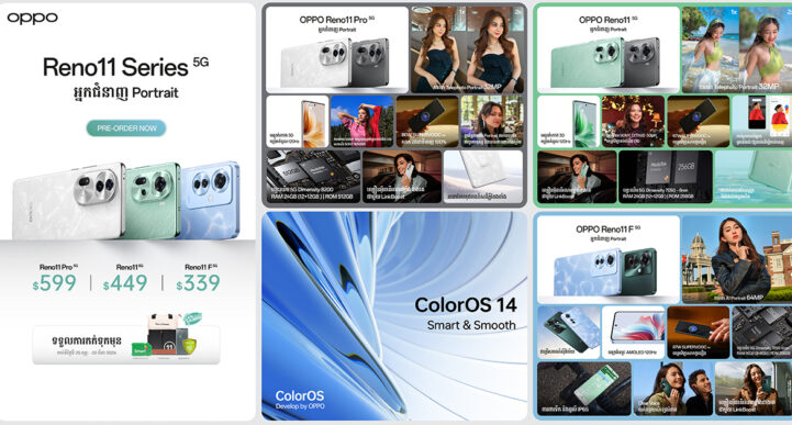 រាល់ពេលឮដល់ត្រកូល OPPO Reno Series យើងទាំងអស់គ្នាស្រមៃនឹកដល់ប្រព័ន្ធកាមេរ៉ាថតរូបស្អាត មិនថាថតពេលថ្ងៃឬពេលយប់ ការថតប្លង់ទូលាយ ការថតរូបបែប Portrait យ៉ាងស្រស់ស្អាតជាមួយគុណភាពមិនចាញ់កាមេរ៉ាអាជីពនោះទេ ជាហេតុដែល OPPO បានហៅ Reno Series នេះថាជា “អ្នកជំនាញ Portrait” ។ លើកនេះ OPPO បានបញ្ចេញ Reno11 Series 5G បងប្អូនទាំង 3 នាក់រួមមាន Reno11, Reno11 Pro និង Reno11 F