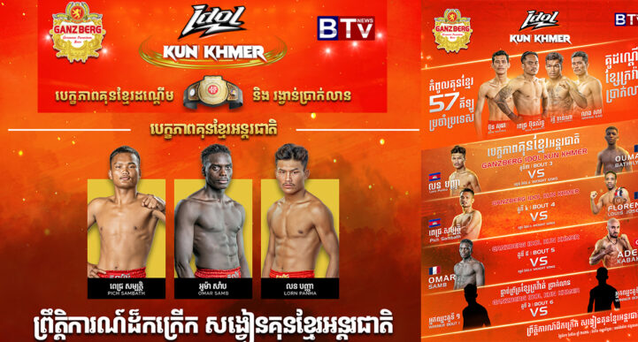 ភ្នំពេញ៖ ការវិលត្រឡប់មកវិញនៃកម្មវិធី GANZBERG IDOL KUN KHMER កាន់តែកក្រើក កាន់តែធំ ដែលជាមហាព្រឹត្តិការណ៍ប្រដាល់គុនខ្មែរដ៏ធំមួយនៅដើមខែមីនាខាងមុខនេះ កម្មវីធីនេះដែរ គឺជាការប្រកួតដណ្តើមខ្សែក្រវ៉ាត់ និងរង្វាន់ប្រាក់លានពីកម្មវិធី GANZBERG IDOL KUN KHMER ។ រហូតមកដល់ពេលនេះកីឡាករខ្មែរផ្លូវការ ៤ រូបបានត្រៀមខ្លួនរួចរាល់សម្រាប់ការប្រកួតដណ្តើមខ្សែក្រវ៉ាត់ និង ប្រាក់លាន គឺកីឡាករ ពេជ្រ ប៊ុនសិទ្ធ និង កីឡាករ រិទ្ធី ចាន់ណា កីឡាករ ណង សាវ និង កីឡាករ
