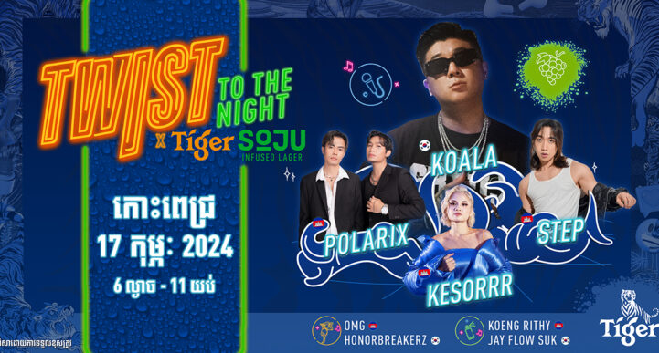 (ភ្នំពេញ ០១ កុម្ភៈ ២០២៤) – កម្មវិធី TWIST TO THE NIGHT ដែលនឹងធ្វើឡើងនៅថ្ងៃសៅរ៍ ទី17 ខែកុម្ភៈខាងមុខនេះ ជាកម្មវិធីមួយដែលរួមបញ្ចូលស្ទាយល៍កូរ៉េបែប K-Pop ទៅក្នុងបរិយាកាសដ៏សប្បាយរបស់កម្ពុជាយើង បង្កើតបានជាបទពិសោធដ៏ថ្មីប្លែកមិនធ្លាប់មានពីមុនមក។ កម្មវិធីនេះនាំមកជូនដោយ Tiger Soju ថ្មី ដែលជាប្រភេទស្រាបៀររួមបញ្ចូលជាមួយស្រាសូជូរសជាតិទំពាំងបាយជូរ បង្កើតបានរសជាតិដ៏ស្រស់ស្រាយ និងផ្អែមតិចៗដែលជារសជាតិយ៉ាងថ្មីប្លែក។ Tiger Soju ផ្តល់រសជាតិមួយដែលអ្នកនឹកស្មានមិនដល់ នឹងបន្ថែមភាពរីករាយក្នុងឱកាសជួបជុំអបអរនានាឱ្យកាន់តែសប្បាយថែមមួយកម្រិតទៀត។ ត្រៀមទទួលយកភាពសប្បាយរីករាយនៃភាពច្នៃប្រតិដ្ឋ ស្ទីលហ្វេសសិនបែបកូរ៉េ តន្ត្រីK-Pop សិល្បៈគំនូរ ក្បាច់រាំប្លែកៗ និងសកម្មភាពកម្សាន្តជាច្រើនទៀតនៅបរិវេណខាងក្រៅនៃកោះពេជ្រស៊ីធីហល។