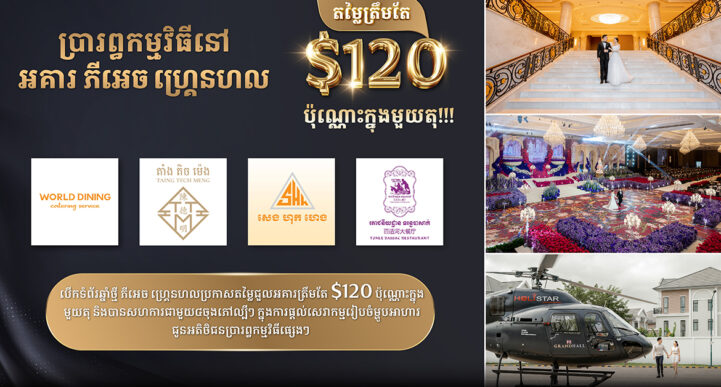 (ភ្នំពេញ)៖ បើកទំព័រថ្មីសម្រាប់ឆ្នាំ២០២៤ សាលសន្និបាតនិងអគារប្រារព្ធពិធីមង្គលការ ភីអេច ហ្គ្រេនហល ដែលមានទីតាំងក្នុងគម្រោង បុរី ប៉េង ហួត ហ្គ្រេនស្តាផ្លាទីនីម (បឹងស្នោ) ស្ថិតនៅតាមបណ្តោយផ្លូវជាតិលេខ ១ បានប្រកាសតម្លៃពិសេសត្រឹមតែ $120 តែប៉ុណ្ណោះក្នុងមួយតុ និងបើកទទួលបណ្តាក្រុមហ៊ុនធុរៈកិច្ចនានាដែលមានគុណភាពខ្ពស់ ជាដៃគូផ្តល់សេវាកម្មរៀបចំម្ហូបអាហារជូនអតិថិជនរបស់ខ្លួន។ ការបោះជំហានថ្មីមួយនៃការសហការភាពជាដៃគូនេះ ត្រូវបានធ្វើឡើងកាលពីដើមខែមករាកន្លងទៅរវាងអគារ ភីអេច ហ្គ្រេនហល ជាមួយបណ្តាក្រុមហ៊ុន និងចុងភៅល្បីចំនួន ៤គឺ ក្រុមហ៊ុន World dinning Catering Service ក្រុមហ៊ុនធុរៈកិច្ច តាំង តិច ម៉េង