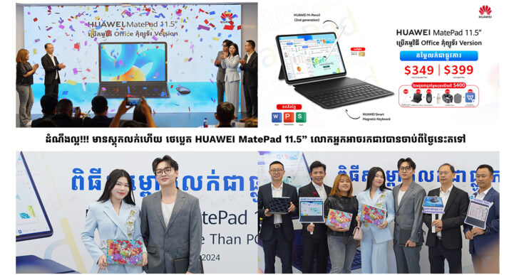 ក្រុមហ៊ុនហួវៃប្រចាំប្រទេសកម្ពុជាបានសម្ពោធជាផ្លូវការ ថេប្លេត HUAWEI MatePad 11.5” ប្រើកម្មវិធី Office កុំព្យូទ័រ Version ពីល្ងាចម្សិលមិញ ដោយមានវត្តមានអាយដល Sweet couple វិសាល ស្រីនា និង កញ្ញា លីសា ម៉ម បង្ហាញពីលក្ខណៈពិសេស ចែករំលែកបទពិសោធន៍ គូរគំនូរឌីជីថល ប្រកួត Typing អក្សរខ្មែរយូនីកូដ និង ប្រកួតគណនាលំហាត់ Excel នៅលើថេប្លេត HUAWEI MatePad 11.5” កក្រើកវេទិកាក្រុមហ៊ុនហួវៃ។ លោក
