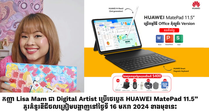 ពិតជាគួរឱ្យស្ងើចសរសើរដល់កញ្ញា Lisa Mam ដែលជា Digital Artist មួយរូបកំពុងទទួលបានការគាំទ្រខ្លាំងតាមរយៈគំនូរឌីជីថលរបស់កញ្ញា។ មិនត្រឹមតែប៉ុណ្ណោះ កញ្ញា Lisa Mam ក៏ទទួលបានការសហការណ៍ជាមួយក្រុមហ៊ុន Huawei ទៅលើថេប្លេត HUAWEI MatePad 11.5” ដោយកញ្ញ Lisa បានគូរគំនូរឌីជីថលដែលបង្ហាញពីសិល្បៈ វប្បធម៌ រួមជាមួយបច្ចេកវិទ្យាទំនើបមិនធ្លាប់មាន។ គំនូរឌីជីថលដ៏ស្អាតផូសផង់នេះ កញ្ញា Lisa បានប្រើប៊ិច HUAWEI M-Pencil 2nd Gen គូរលើថេប្លេត HUAWEI MatePad 11.5”