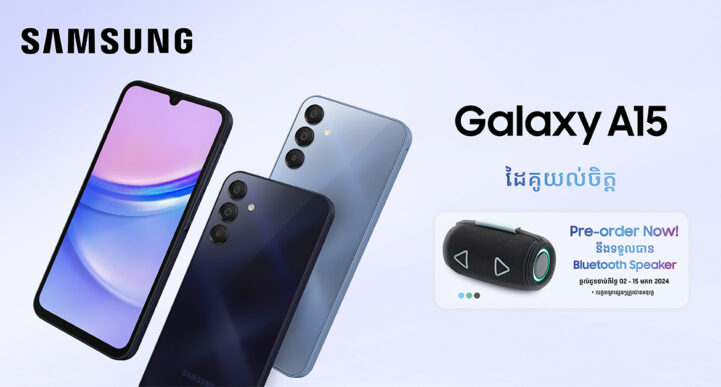 (ភ្នំពេញ) ថ្ងៃទី ០៥ ខែមករា ឆ្នាំ ២០២៤៖ ពីមួយរដូវកាលទៅមួយរដូវកាល ក្រុមហ៊ុនសាមសុង តែងតែនាំយកនូវបទពិសោធន៍ដ៏អស្ចារ្យស្មានមិនដល់ និងសម្រួលដល់ការប្រើប្រាស់ប្រចាំថ្ងៃកាន់តែងាយស្រួល ហើយលើកនេះ គឺរឹតតែអេមជាមួយនឹងស្មានហ្វូនស៊េរីថ្មី Galaxy A15 5G ដែលល្អទាំងគុណភាព…ល្អទាំងតម្លៃ។ កាន់តែពិសេសថែមទៀត អតិថិជនគ្រាន់តែធ្វើការដាក់ Pre-Order នៅតាមបណ្តាលហាងចែកចាយផលិតផល សាមសុង ចាប់ពីថ្ងៃទី 02 ដល់ថ្ងៃទី 15 មករា 2024 នឹងទទួលបានការថែមជូននូវ Bluetooth Speaker មួយដ៏ស្រស់ស្អាត! ហើយទាំងនេះ គឺជាលក្ខណៈសម្បត្តិដ៏ទាក់ទាញបំផុតរបស់ស្មានហ្វូន Galaxy