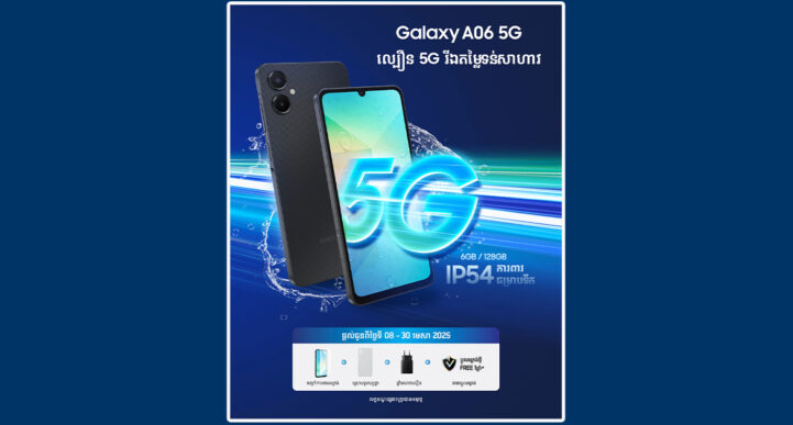(ភ្នំពេញ) ថ្ងៃទី៨ ខែមេសា ឆ្នាំ២០២៥៖ ពីមួយជំនាន់ទៅមួយជំនាន់ ក្រុមហ៊ុនសាមសុង តែងតែរឹតបន្តឹងលើការដុសខាត់ផលិតផលស្មាតហ្វូនគ្រប់ម៉ូឌែលរបស់ខ្លួនចាប់តាំងពីស្មាតហ្វូនលំដាប់ថវិកា រហូតដល់កំពូលស្មាតហ្វូនផ្សេងៗផងដែរ។ ជាក់ស្ដែងដូចថ្ងៃនេះ ក្រុមហ៊ុនសាមសុង បានប្រកាសចេញជាផ្លូវការនូវស្មាតហ្វូនជំនាន់ថ្មី Samsung Galaxy A06 5G ដែលត្រូវបាន រចនាឡើងដោយបំពាក់មកជាមួយ អាវក្រោះ ការពារជម្រាបទឹកកម្រិតខ្ពស់បំផុត IP54 ធានាធន់ និងផ្ដល់ទំនុកចិត្តខ្ពស់ សម្រាប់អ្នក ប្រើប្រាស់គ្រប់ស្ថានការណ៍។ ក្រៅពីសមត្ថភាពការពារជម្រាបទឹកដ៏គួរឱ្យទាក់ទាញ ស្មាតហ្វូន Samsung Galaxy A06 5G ក៏បំពាក់នូវបច្ចេកវិទ្យា 5G ដែលផ្តល់សេវាអ៊ីនធឺណិតល្បឿនលឿនបំផុតសម្រាប់ការទាញយកវីដេអូ និងការលេងហ្គេមកម្សាន្តយ៉ាងជក់ចិត្តដោយគ្មានភាពរអាក់រអួល។