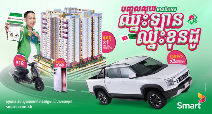 បន្ទាប់ពីទទួលបានភាពជោគជ័យជាមួយនឹង ប្រូម៉ូសិន “បញ្ចូលលុយហើយមានឱកាសឈ្នះ” ក្នុងឆ្នាំ2024 ដែល Smart បានផ្តល់ជូន ឡាន BYD រហូតដល់ទៅប្រាំរង្វាន់ និងរង្វាន់ផ្សេងៗទៀតជាច្រើន ជូនដល់អតិថិជនដែលមានសំណាងឈ្នះទាំងអស់នោះ កាន់តែរំភើប! នៅក្នុងឆ្នាំថ្មី 2025 នេះ ស្របទៅតាមការគាំទ្ររបស់អតិថិជន Smart ដាក់ជូននូវប្រូម៉ូសិន “បញ្ចូលលុយហើយមានឱកាសឈ្នះ” ថ្មីដែលអតិថិជនរបស់ Smart មានឱកាសឈ្នះរង្វាន់រាល់ពេលបញ្ចូលលុយចាប់ពី 1ដុល្លារឡើងទៅ មានទាំងរង្វាន់ចៃដន្យភ្លាមៗ និងរង្វាន់ពីការចាប់រង្វាន់ប្រចាំខែ ត្រីមាស និងបំណាច់ឆ្នាំ។ រាល់ពេលដែលអតិថិជន Smart បញ្ចូលលុយចាប់ពី 1ដុល្លារមិនថាតាមរយៈកាតកោស ឬ E-top