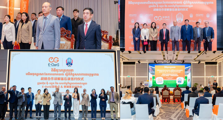 នៅព្រឹកថ្ងៃទី១ ខែមេសានេះ ពិធីចុះហត្ថលេខាលើអនុស្សរណៈនៃការយោគយល់គ្នាស្តីពីកិច្ចសហការឧបត្ថម្ភ រវាងក្រុមហ៊ុន E-GetS/អ៉ី-ហ្គេត និងសហព័ន្ធកីឡាបាល់ទាត់កម្ពុជាបានប្រារព្ធឡើងនៅរាជធានីភ្នំពេញ។ ក្នុងកម្មវិធីនេះបានប្រព្រឹត្តឡើងក្រោមអធិបតីភាពឯកឧត្តម នាយកឧត្តមសេនីយ៍ សៅ សុខា ប្រធានសហព័ន្ធកីឡាបាល់ទាត់កម្ពុជា រួមជាមួយវត្តមាន ប្រធានក្រុមប្រឹក្សាភិបាល E-GetS/អ៉ី-ហ្គេត លោក Xiao Lianhuo អនុប្រធានក្រុមប្រឹក្សារបស់ក្រុមហ៊ុន E-GetS/អ៉ី-ហ្គេត កញ្ញា Wang Huifang និងលោក Zhang Juhui កញ្ញា Mina ទូតសុឆន្ទៈ E-GetS/អ៉ី-ហ្គេត ព្រមជាមួយថ្នាក់ដឹកនាំ និងភ្ញៀវកិត្តិយសមកពីគណៈកម្មាធិការសហព័ន្ធកីឡាបាល់ទាត់កម្ពុជា គណៈកម្មាធិការជាតិអូឡាំពិកកម្ពុជា និងបណ្តាញប្រព័ន្ធផ្សព្វផ្សាយចិន និងបរទេសផ្សេងៗផងដែរ។ លោក Zhang Juhui