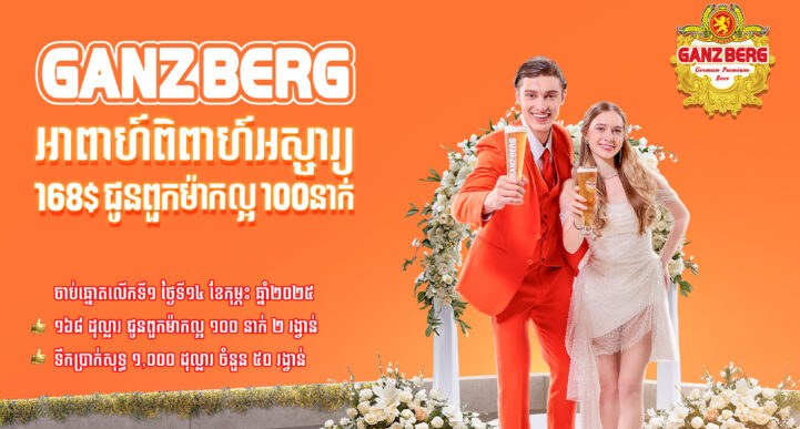 ត្រៀមៗៗ! សូមជម្រាបជូនពុកម៉ែ បងប្អូនទាំងអស់ ជាពិសេសគូស្វាមីភរិយាថ្មី ដែលបានជ្រើសរើស ស្រាបៀរ ហ្គេនស៍បឺគ ដាក់ក្នុងកម្មពិធីមង្គលការ ខួបកំណើត ឡើងគេហដ្ឋានថ្មី និងកម្មពិធីផ្សេងៗ អោយបានជ្រាបថា ក្រុមហ៊ុន នឹងធ្វើការចាប់ឆ្នោតផ្សងសំណាង ជូនដល់អតិថិជន ក្នុងកម្មវិធី អាពាហ៍ពិពាហ៍ អស្ចារ្យ ១៦៨ដុល្លារ ជូនពួកម៉ាកល្អ ១០០នាក់។ ការចាប់ឆ្នោតនេះ នឹងប្រព្រឹត្តទៅ នៅថ្ងៃទី១៤ ខែកុម្ភៈ ឆ្នាំ២០២៥ ខាងមុខនេះ នៅក្រុងដូនកែវ ទីរួមខេត្តតាកែវ ក្នុងកម្មពិធីប្រគុំតន្រ្តី ហ្គេនស៍បឺគ GANZBERG IDOL KUN