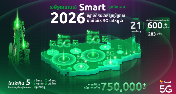 រាជធានីភ្នំពេញ៖ ក្រុមហ៊ុន Smart Axiata កំពុងធ្វើការយ៉ាងមមាញឹក ដើម្បីផ្ដល់នូវការតភ្ជាប់បណ្តាញជំនាន់ក្រោយ5G របស់ខ្លូន ដោយបានដំឡើងស្ថានីយ 5G ជាង 600ស្ថានីយ នៅតាមបណ្តាខេត្តក្រុងចំនួន 21ក្នុងរយៈពេលត្រឹមតែ 27 ថ្ងៃប៉ុណ្ណោះ។ ចំនួនអង់តែនបានកើនឡើងស្ទើគុណនឹងពីរក្នុងរយៈពេលតិចជាងមួយខែ ចាប់ពីត្រឹមតែ 283 ស្ថានីយនាថ្ងៃទី 01 ខែមករា រហូតដល់ជាង 600 ស្ថានីយនាពេលបច្ចុប្បន្ន។ ការពង្រីកនេះបង្ហាញពីសមិទ្ធផល និងការប្តេជ្ញាបន្តរបស់ក្រុមហ៊ុន Smart ក្នុងការផ្តល់សេវា និងការតភ្ជាប់ឌីជីថលសម្រាប់អតិថិជនដែលជាបុគ្គល គ្រួសារ និងអាជីវកម្មគ្រប់ធន់ ដែលនេះជាកិច្ចបន្តពីសមិទ្ធផលឆ្នាំចាស់ដែលក្រុមហ៊ុនបានធ្វើការដំឡើងស្ថានីយជាង 500 ស្ថានីយក្នុងឆ្នាំ 2025។