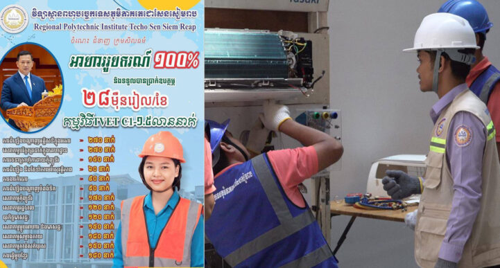 (សៀមរាប)៖ វិទ្យាស្ថានពហុបច្ចេកទេសភូមិភាគតេជោសែនសៀមរាប នៃក្រសួងការងារ និងបណ្តុះបណ្តលវិជ្ជាជីវៈ ផ្តល់អាហារូបករណ៍ចំនួន ២ ០០០កន្លែង លើ ១៣មុខជំនាញ ដល់យុវជនមកពីគ្រួសារក្រីក្រ និងគ្រួសារងាយរងហានិភ័យ ព្រមទាំងផ្ដល់ប្រាក់ឧបត្ថម្ភប្រចាំខែក្រោមកម្មវិធីបណ្តុះបណ្តាលជំនាញវិជ្ជាជីវៈ និងបច្ចេកទេសដល់យុវជនមកពីគ្រួសារក្រីក្រ និងគ្រួសារងាយរងហានិភ័យ (TVET 1.5M)។ សម្រាប់ប្រជាពលរដ្ឋ និងយុវជន ដែលមិនមែនជាក្រុមគោលដៅ ក៏អាចស្នើចុះឈ្មោះចូលសិក្សាបានដោយឥតគិតថ្លៃផងដែរ ប៉ុន្តែមិនទទួលបានប្រាក់ឧបត្ថម្ភនោះឡើយ។ មុខជំនាញទាំង១៣នោះ រួមមាន ការដំឡើងបណ្តាញអគ្គិសនីក្នុងអគារ, សេវាកម្មបរិក្ខារត្រជាក់ក្នុងគេហដ្ឋាន, ការរចនាក្រាហ្វិកដោយកំព្យូទ័រ, ការដំឡើង និងថែទាំកាមេរ៉ាសុវត្ថិភាព, ការងារកំបោរ, ការដំឡើងបណ្តាញបំពង់ទឹក, សេវាកម្មកុំព្យូទ័រ, សេវាកម្មរដ្ឋបាល, ធុរកិច្ចភេសជ្ជៈ, សេវាកម្មម្ហូបអាហារ