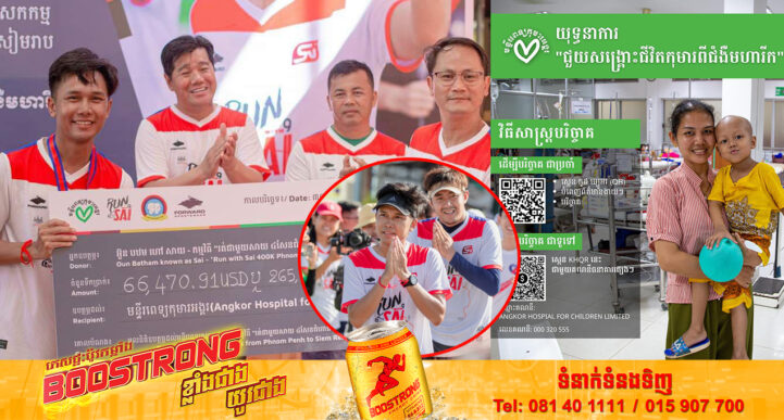 (សៀមរាប)៖ កម្មវិធីរត់ជាមួយសាយ ៤សែនជំហាន ដើម្បីរៃអង្គាសថវិកាជួយសង្គ្រោះជីវិតកុមារពីជំងឺមហារីកនៅក្នុងមន្ទីរពេទ្យកុមារអង្គរខេត្តសៀមរាប ដែលរៀបចំឡើងដោយបងប្អូនគ្រួសារខ្មែរយើងស្គាល់ឈ្មោះថា (សាយ) ជាតារាចម្រៀងដ៏មានឈ្មោះបោះសំឡេងនៅកម្ពុជា សហការជាមួយសហភាពសហព័ន្ធយុវជនកម្ពុជា បានធ្វើដំណើររត់ថ្មើរជើងចំងាយប្រមាណ៣០៣គីឡូម៉ែត្រ ក្នុងរយៈពេល៩ថ្ងៃចាប់ពីថ្ងៃទី២២ ខែតុលា ឆ្នាំ២០២២ ដល់ថ្ងៃទី៣១ ខែតុលាឆ្នាំ២០២២ ដោយចេញដំណើរពី សហភាពសហព័ន្ធយុវជនកម្ពុជា ស្នាក់ការរាជធានីភ្នំពេញ ឆ្ពោះមកកាន់ខេត្តសៀមរាប តាមបណ្តោយផ្លូវជាតិលេខ៦។ ការរត់នេះមកដល់ខេត្តសៀមរាបក៏មានការទទួលស្វាគមន៍របស់លោក អ៉ឹង គឹមលាង អភិបាលរងខេត្ត តំណាងឯកឧត្តម ទៀ សីហា អភិបាលខេត្ត ដោយមានការចូលរួមពីថ្នាក់ដឹកនាំមន្ទីរ អាជ្ញាធរក្រុង ស្រុក និង សភាពសហព័ន្ធយុវជនកម្ពុជាខេត្ត ក្រុង ស្រុក