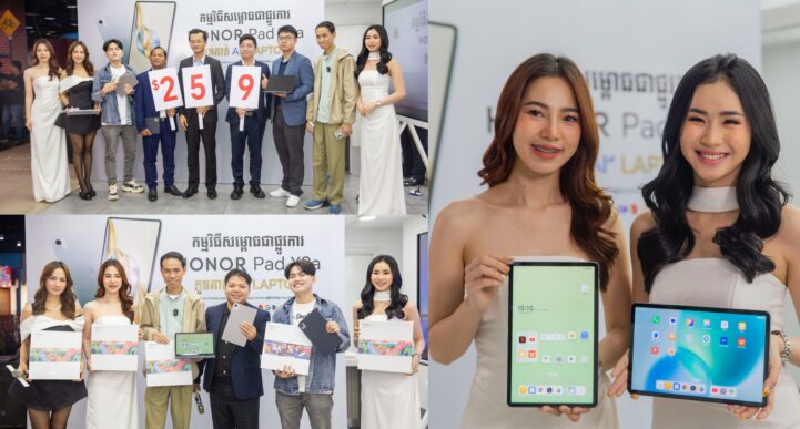 (ភ្នំពេញ មិថុនា)៖ ក្រុមហ៊ុនហនណឺ ដាក់សម្ពោធជាផ្លូវការនូវថេប្លេតស៊េរីថ្មីទម្រង់កុំព្យូទ័រ AI ហនណឺ ផេត អ៊ិច ប្រាំបួន អេ (HONOR Pad X9a) អេក្រង់2.5K ប្រើស៊ីមកាត រ៉េម16ជី ម៉េម៉ូរី256ជី Speak4គ្រាប់ ថ្មកាន់ខ្លាំង ល្បឿនសាកថ្មលឿន 35W មួយកំភ្លេ ភ្ជាប់បច្ចេកវិទ្យាការពារភ្នែក ក្នុងតម្លៃត្រឹមតែ 259$ ថែម10$ពីលើ នឹងទទួលបានប៊ិចឆ្លាតវៃ ព្រមទាំងកាដូសរុប 128$ រួមមាន ប្លូធូ Keyboard, ស្រ្គីនការពារអេក្រង់, និង