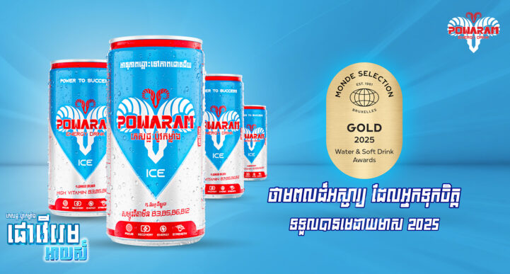 ពិតជាមិនធម្មតា! ផលិតផលកូនខ្មែរបោះឆ្ពោះទៅឆាកអន្តរជាតិ! ភេសជ្ជៈប៉ូវកម្លាំង ផោវើរេមអាយស៍ បានបង្ហាញភាពលេចធ្លោនៅលើឆាកអន្តរជាតិដោយឈ្នះមេដាយមាសដ៏មានកិត្តិយសបំផុត ពីស្ថាប័នពិនិត្យគុណភាពលំដាប់ពិភពលោក Monde Selection ឆ្នាំ២០២៥ ដែលប្រារព្ធពិធីនៅទីក្រុងប្រាក សាធារណរដ្ឋឆេក។ ការឈ្នះមេដាយមាសនេះមិនមែនជារឿងចៃដន្យ តែបានបញ្ជាក់ឱ្យឃើញយ៉ាងច្បាស់ថា ផោវើរេមអាយស៍ ពិតជាមានគុណភាពខ្ពស់និងរសជាតិស្របតាមស្តង់ដារអន្តរជាតិយ៉ាងពិតប្រាកដមែន។ ភាពជោគជ័យដ៏មហោឡារិកនេះបានបង្ហាញពីភាពល្អដាច់គេរបស់ភេសជ្ជៈប៉ូវកម្លាំងផោវើរេមអាយស៍ ជាមួយក្លិនក្រអូបឈ្ងុយ បន្ថែមជាមួយម៉ុងតល់ (Menthol) ត្រជាក់ស្រស់ស្រាយ ទទួលអារម្មណ៍ដល់ច្រមុះភ្លាមៗក្រោយពិសារួច។ បើនិយាយពីរសជាតិវិញ ភេសជ្ជៈប៉ូវកម្លាំងផោវើរេមអាយស៍គឺជាជម្រើសទី ១ សម្រាប់អ្នកចូលចិត្តរសជាតិជូរអែម ឆ្ងាញ់ជាប់មាត់ បន្ថែមជាមួយម៉ុងតល់ត្រជាក់ប្រហើរជួយឱ្យអារម្មណ៍ស្រស់ស្រាយ និងរួមផ្សំជាមួយវីតាមីនច្រើនប្រភេទជំនួយដល់ថាមពល ស្មារតី មុខងារខួរក្បាល បង្កើនអានុភាពឆ្ពោះទៅភាពជោគជ័យ។ ភេសជ្ជៈប៉ូវកម្លាំងផោវើរេមអាយស៍ផលិតឡើង សម្រាប់ប្រជាជនខ្មែរ ស្របតាមបទដ្ឋាននៃសង្វាក់ផលិតផលដែលមានគុណភាពខ្ពស់