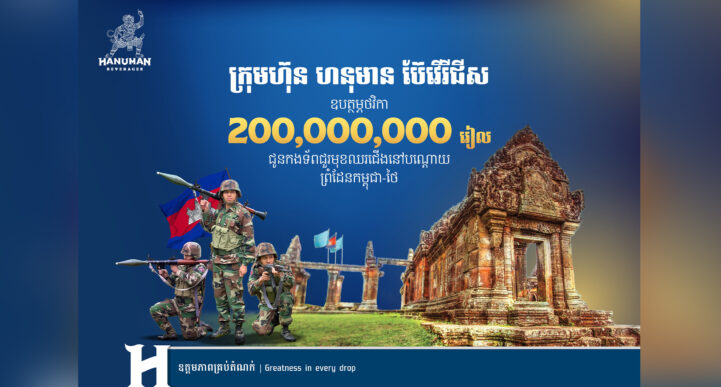 ភ្នំពេញ៖ តបតាមការអំពាវនាវរបស់សម្តេចតេជោ ហ៊ុន សែន ប្រធានព្រឹទ្ធសភា និងក្នុងស្មារតីគាំទ្រដល់ការដឹកនាំរបស់រាជរដ្ឋាភិបាលក្នុងការពង្រឹងសន្តិសុខជាតិ និងការពារព្រំដែនកម្ពុជា-ថៃ ក្រុមហ៊ុន ហនុមាន ប៊ែវើរីជីស បានធ្វើការឧបត្ថម្ភថវិកាចំនួន ២០០ លានរៀល ជូនដល់កងទ័ពជួរមុខកម្ពុជា ដែលបាននឹងកំពុងបំពេញភារកិច្ចការពារបូរណភាពទឹកដីតាមបណ្តោយព្រំដែនកម្ពុជា–ថៃ។ ការឧបត្ថម្ភនេះ គឺជាការលើកទឹកចិត្តដល់កងទ័ពកម្ពុជាដ៏អង់អាច និងបញ្ជាក់នូវស្មារតី “ខ្មែរស្រលាញ់ខ្មែរ” ដែលជាប្រភពនៃភាពរឹងមាំក្នុងសង្គមជាតិយើង និងបង្ហាញពីភាពរួបរួមគ្នាជាធ្លុងមួយនៃខឿនការពារជាតិរបស់កម្ពុជា។ បងប្អូនកងទ័ព គឺជាបងប្អូនខ្មែររួមជាតិដែលបានលះបង់សុភមង្គលក្នុងជីវិតគ្រួសារ និងការសប្បាយផ្ទាល់ខ្លួន ដោយសុខចិត្តចាកឆ្ងាយពីមនុស្សជាទីស្រលាញ់ដើម្បីការពារបូរណភាពទឹកដី អធិបតេយ្យភាព ជាតិមាតុភូមិ និងសុខសុវត្ថិភាព សន្តិភាពនៃជីវភាពរស់នៅរបស់ប្រជាពលរដ្ឋខ្មែរ។ លើសពីនេះទៅទៀតការឧបត្ថម្ភនេះ ជាការឆ្លើយតបជាមួយគោលនយោបាយរបស់រាជរដ្ឋាភិបាលក្នុងកិច្ចការពារ និងកសាងប្រទេសឲ្យមានសុខសន្តិភាព ស្ថិរភាព ឯករាជ្យភាពជាតិ