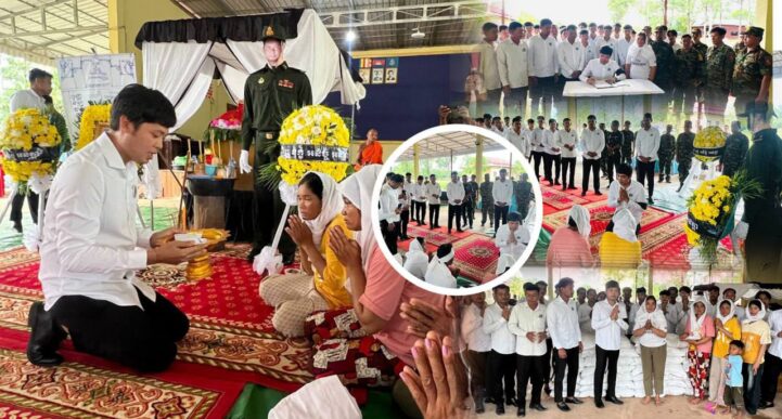 ខេត្តព្រះវិហារ៖ ឧកញ៉ា ឡេង និមល តំណាងអ្នកឧកញ៉ា ឡេង ណាវ៉ាត្រា ដឹកនាំប្រតិភូយុវជនបូជាការពារយុត្តិធម៌ គោរពវិញ្ញាណក្ខន្ធសពព្រឹន្ទបាលឯក សួន រ៉ោន ពលីជីវិតដោយហេតុការណ៍ប៉ះទង្គិចគ្នារវាងកងទ័ពកម្ពុជា-ថៃ នៅព្រំដែនតំបន់មុំបី។ លោកឧកញ៉ា ឡេង និមល តំណាងអ្នកឧកញ៉ា ឡេង ណាវ៉ាត្រា ប្រធានយុវជនបូជាការពារយុត្តិធម៌ នារសៀលថ្ងៃទី២៩ ខែឧសភានេះ បានដឹកនាំប្រតិភូក្រុមយុវជនបូជាការពារយុត្តិធម៌ ចូលរួមគោរពវិញ្ញាណក្ខន្ធ និងចូលរួមរំលែកទុក្ខក្រុមគ្រួសារនៃសព ព្រឹន្ទបាលឯក សួន រ៉ោន ចំពោះមរណភាពរបស់ព្រឹន្ទបាលឯក សួន រ៉ោន ដោយហេតុការណ៍ប៉ះទង្គិចគ្នារវាង កងទ័ពកម្ពុជា-ថៃ នៅព្រំដែនតំបន់មុំបី