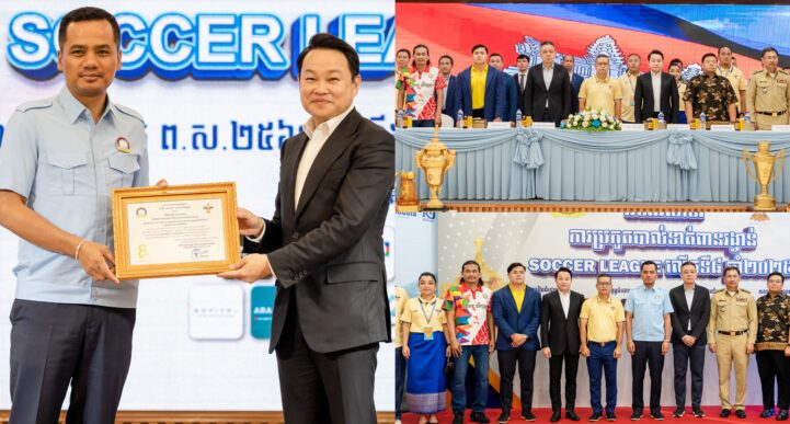 (ភ្នំពេញ)៖ ស្របពេលដែលវិស័យបាល់ទាត់នៅកម្ពុជា កាន់តែមានសន្ទុះគាំទ្រខ្លាំងក្លា ទាំងក្រុមបាល់ទាត់បុរស និង នារីនោះ ខ្មែរ ប៊ែវើរីជីស ដែលមានបេះដូងជាអ្នកស្រលាញ់វិស័យកីឡាស្រាប់ បានចេញមុខចូលរួមយ៉ាងសកម្មបន្តទៀត ក្នុងការជម្រុញវិស័យកីឡាបាល់ទាត់កម្ពុជាឱ្យកាន់តែរីកលូតលាស់ទៅមុខ តាមរយៈការរួមចំណែកឧបត្ថម្ភធំក្នុង «ព្រឹត្តិការណ៍ប្រកួតកីឡាបាល់ទាត់ Soccer League លើកទី ៨» ឆ្នាំ ២០២៥ នេះ។ កម្មវិធីសន្និសីទសារព័ត៌មាន និងការចាប់ឆ្នោតជ្រើសរើសពូល សម្រាប់ការប្រកួតបាល់ទាត់ពានរង្វាន់ Soccer League លើកទី ៨ ឆ្នាំ ២០២៥ បានប្រព្រឹត្តទៅក្រោមអធិបតីភាពរបស់ឯកឧត្តមអភិសន្តិបណ្ឌិត ស សុខា ប្រធានគណៈកម្មការរៀបចំការប្រកួតបាល់ទាត់ពានរង្វាន់ Soccer