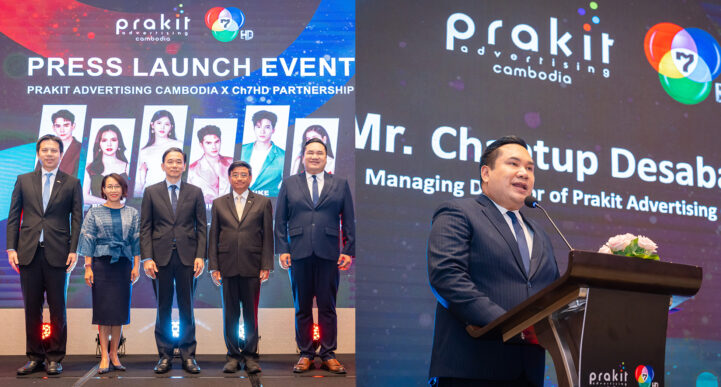 (ភ្នំពេញ)៖ កាលពីថ្ងៃទី១០ ខែឧសភា ឆ្នាំ២០២៤ ក្រុមហ៊ុនភ្នាក់ងារពាណិជ្ជកម្ម Prakit Advertising Cambodia បានចុះកិច្ចសហប្រតិបត្តិការយ៉ាងជោគជ័យមួយ ជាមួយគណៈគ្រប់គ្រងប្រចាំស្ថានីយទូរទស្សន៍ ប៉ុស្តិលេខ 7HD ដែលបានធ្វើឡើងនៅសណ្ឋាគារ Fairfield by Marriott ភ្នំពេញកន្លងទៅនេះ។ ការចុះអនុស្សារណៈយោគយល់គ្នានេះ បានផ្ដល់ឱកាសឲ្យក្រុមហ៊ុនភ្នាក់ងារពាណិជ្ជកម្ម Prakit Advertising Cambodia បានទទួលតារាល្បីៗផ្ដាច់មុខពីប្រទេសថៃ មកក្នុងប្រទេសកម្ពុជារបស់យើងផងដែរ។ នៅក្នុងព្រឹត្តការណ៍នេះដែរក៏មានការចូលរួមពីសំណាក់ថ្នាក់ដឹកនាំសំខាន់ៗនៅក្នុងរាជធានីភ្នំពេញនេះផងដែរ។ មានការចូលរួមពីសំណាក់ឥស្សរជនដ៏លេចធ្លោធំៗមួយចំនួនដូចជា ឯកឧត្តម ឈឺគៀត អាត់ថាករ ឯកអគ្គរាជទូតថៃប្រចាំព្រះរាជាណាចក្រកម្ពុជា លោក Chantup Desabaedya (ចាន់ថាប់