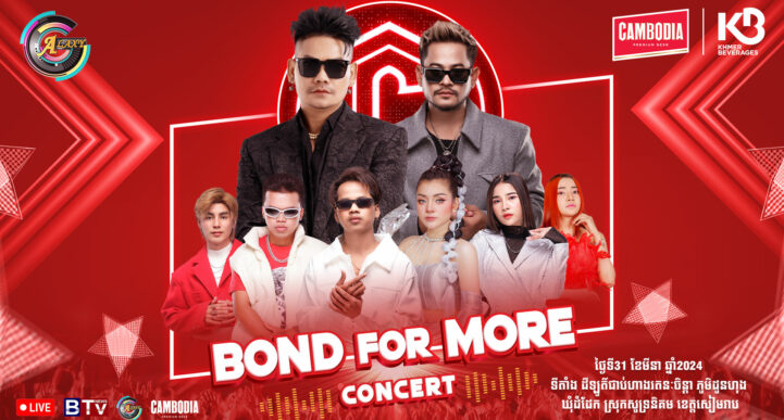 (ភ្នំពេញ)៖ មហាព្រឹត្តិការណ៍ប្រគំតន្ត្រីដ៏ធំសម្បើមប្រចាំប្រទេស CAMBODIA BOND FOR MORE TOUR CONCERT និងមហាព្រឹត្តិការណ៍ CAMBODIA គុនខ្មែរ របស់ CAMBODIA BEER នឹងប្រព្រឹត្តឡើងនៅចុងសប្តាហ៍នេះដែលមានរយៈពេល ២ថ្ងៃ គឺថ្ងៃទី៣០ និង៣១ ខែមីនា ឆ្នាំ២០២៤។ មហាព្រឹត្តិការណ៍ទាំង ៣ នឹងរៀបចំឡើងនៅទីតាំងរួមមាន៖ ១) ខេត្តកំពង់ឆ្នាំង៖ មហាព្រឹត្តិការណ៍ប្រគំតន្ត្រីដ៏ធំសម្បើមប្រចាំប្រទេស CAMBODIA BOND FOR MORE TOUR CONCERT សហការជាមួយផលិតកម្ម ហង្សមាស