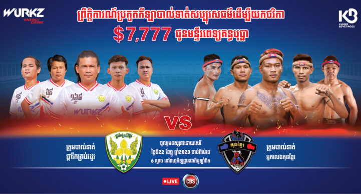 (ភ្នំពេញ)៖ ភេសជ្ជៈប៉ូវកម្លាំង វើក រៀបចំព្រឹត្តិការណ៍ប្រកួតបាល់ទាត់សប្បុរសធ៌ម ដែលចូលរួមប្រកួតដោយកីឡាករបាល់ទាត់ និងកីឡាករគុនខ្មែរ និងឧបត្ថម្ភចំនួន ៧,៧៧៧ដុល្លារ ជូនមន្ទីរពេទ្យគន្ធបុប្ផា ក្នុងគោលបំណងបង្ហាញពីថាមពលដ៏ឥតឈប់ឈររវាងកីឡានិងការបង្កើនផលវិជ្ជមានដល់សង្គម។ ព្រឹត្តិការណ៍ប្រកួតបាល់ទាត់ នឹងធ្វើឡើងនៅថ្ងៃទី២២ ខែធ្នូ ឆ្នាំ២០២៣ នៅពហុកីឡរដ្ឋានជាតិអូឡាំពិក ចាប់ពីម៉ោង ៦ល្ងាច តទៅ ដែលមានកីឡាករចូលរួមការប្រកួតគឺ ក្រុមផ្ការីកគ្រប់រដូវ និងកីឡាករជួរមុខរបស់គុនខ្មែរជាច្រើនរូប។ គួរបញ្ជាក់ផងដែរថា នេះជាលើកទី ៥ ហើយដែលក្រុមហ៊ុន ខ្មែរ ប៊ែវើរីជីស ផ្តល់ការឧបត្ថម្ភដល់ក្រុមបាល់ទាល់ ផ្ការីគ្រប់រដូវ ក្នុងស្មារតីជួយជ្រោមជ្រែងកម្មវិធីសប្បុរសធ៌មនៅកម្ពុជា។ ចូលរួមព្រឹត្តិការណ៍ប្រកួតបាល់ទាត់មិត្តភាព ៧,៧៧៧ដុល្លារ ទាំងអស់គ្នា ដើម្បីទទួលបាននូវទស្សនីយភាពដ៏អស្ចារ្យរវាងកីឡាករបាល់ទាត់