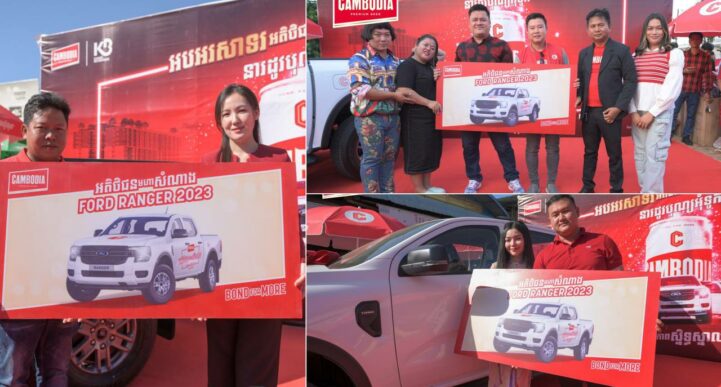 (ភ្នំពេញ)៖ ចែកឡានអស់ស្ទះពី CAMBODIA BEER ដើម្បីបង្កើនភាពស្និទ្ធស្នាលរវាងអតិថិជនជាមួយនឹងគ្រួសារ ដែលជាការបើកទំព័រសករាជថ្មី ឆ្នាំ២០២៤។ អតិថិជនកំពូលសំណាងឈ្នះរង្វាន់រថយន្តថ្មីបកកេស FORD RANGER ស៊េរីថ្មី មានចំនួន ៣នាក់ ពី CAMBODIA BEER រួមមាន៖១) ប៊ុត ឡូញ រស់នៅខេត្តត្បូងឃ្មុំ, ២) ឆាយ លីប៊ូច រស់នៅខេត្តព្រះវិហារ, និង ៣) ធឿន រស្មី រស់នៅខេត្តឧត្តរមានជ័យ។ គួរបញ្ជាក់ផងដែរថា ការប្រគល់រង្វាន់រថយន្តទំនើបស៊េរីថ្មីទាំង ៣គ្រឿង ត្រូវបានផ្តល់ជូនអតិថិជនផ្ទាល់ដៃដល់ខេត្តរបស់អតិថិជននីមួយៗ ដោយមានការហែក្បួនថយន្ត