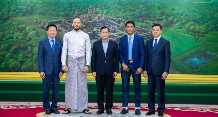 (ភ្នំពេញ)៖ នៅថ្ងៃទី២ ខែវិច្ឆិកា ឆ្នាំ២០២៣ សម្តេចមហាបវរធិបតី ហ៊ុន ម៉ាណែត នាយករដ្ឋមន្ត្រីកម្ពុជា បានអនុញ្ញាតឱ្យថ្នាក់ដឹកនាំកំពូលក្រុមហ៊ុន ខ្មែរ ប៊ែវើរីជីស ដែលមានអ្នកឧកញ៉ា លាង ឃុន និងអ្នកឧកញ៉ា លាង ម៉េង, កំពូលកីឡាករគុនខ្មែរ ព្រំ សំណាង, ស្តេចប្រដាល់ភូមា ដាវ លឺដុឌ និងអ្នកតំណាងស្ថានីយទូរទស្សន៍ ថោន ចូលជួបដើម្បីសម្តែងការគួរសមមុនចូលរួមប្រកួតក្នុងមហាព្រឹត្តិការណ៍ «WURKZ សេនាគុនខ្មែរពិភពលោក» នៅថ្ងៃទី៥ ខែវិច្ឆិកា ខាងមុខនេះ។ ស្តេចប្រដាល់ភូមា ដាវ លឺដុឌ