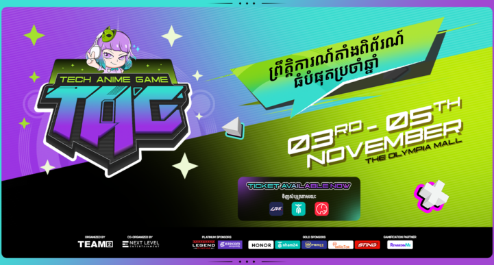 តើអ្នកត្រៀមខ្លួនហើយឬនៅ សម្រាប់ព្រឹត្តិការណ៍ដំបូងគេបង្អស់ដែលមានការបង្ហាញនូវគ្រឿងបច្ចេកវិទ្យាអេឡិចត្រូនិច Anime និងហ្គេម? សម្រាប់បងប្អូនណាដែលមានចំណាប់អារម្មណ៍ កុំភ្លេចណា នៅថ្ងៃទី 3 ដល់ថ្ងៃទី 5 ខែវិច្ឆិកា ឆ្នាំ២០២៣ដែលនឹងមានការតាំងពិព័រណ៍ TAG-គ្រឿងបច្ចេកវិទ្យាអេឡិចត្រូនិច Anime និងហ្គេម ដែលមិនធ្លាប់មានពីមុនមកនៅប្រទេសកម្ពុជា ដែលរៀបចំឡើងដោយ Team2 និងសហការរៀបចំដោយ Next Level Entertainment ។ តើ TAG ជាអ្វី? TAG ជាព្រឹត្តិការណ៍តាំងពិព័រណ៍ដំបូងគេបង្អស់ក្នុងប្រទេសកម្ពុជា ដោយបាននាំយកសហគមន៍បច្ចេកវិទ្យា Anime និងហ្គេម ក្នុងវេទិកាដ៏អស្ចារ្យមួយ។ មិនថាអ្នកជាអ្នកបង្កើតហ្គេម អ្នកលេងហ្គេម