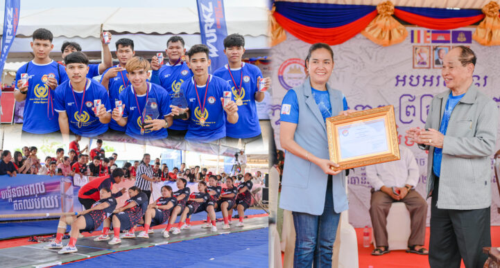 (ភ្នំពេញ)៖ ដើម្បីជាការលើកស្ទួយ ល្បែងទាញព្រ័ត្រកម្ពុជា ដែលជាបេតិកភណ្ឌវប្បធម៌អរូបីរបស់មនុស្សជាតិ នៃអង្គការយូណេស្កូ ក្រុមហ៊ុន ខ្មែរ ប៊ែវើរីជីស បានធ្វើជាម្ចាស់ឧបត្ថម្ភធំ ដល់ព្រឹត្តិការណ៍ប្រកួតកីឡាទាញព្រ័ត្រ និងកីឡាកាច់ដៃជ្រើសរើសជើងឯកលំដាប់ថ្នាក់ជាតិក្នុងឆ្នាំ ២០២៣ ដែលបានធ្វើឡើងចាប់ពីថ្ងៃ១៣ រហូតដល់ថ្ងៃទី១៥ ខែកក្កដា ឆ្នាំ២០២៣ កន្លងទៅនេះ នៅ រង្វង់មូលនាងមច្ឆាក្នុងតំបន់ OCIC ជ្រោយចង្វារ។ ការប្រកួតជ្រើសរើសជើងឯកថ្នាក់ជាតិឆ្នាំ២០២៣នេះ គឺ មាន ១២សមាគម ចូលរួមនិងត្រូវជា ៣៨ ក្រុមហើយសរុបកីឡាករ កីឡាការិនីមានចំនួន ២៤៤នាក់ ដោយគោលដៅនៃការប្រកួតថ្នាក់ជាតិនេះ គឺដើម្បីជ្រើសកីឡាករ-កីឡាការិនីពង្រឹងសមត្ថភាព និងហ្វឹកហាត់ត្រៀមប្រកួតព្រឹត្តិការណ៍អន្ដរជាតិនានា ជាពិសេសព្រឹត្តិការណ៍ស៊ីហ្គេម