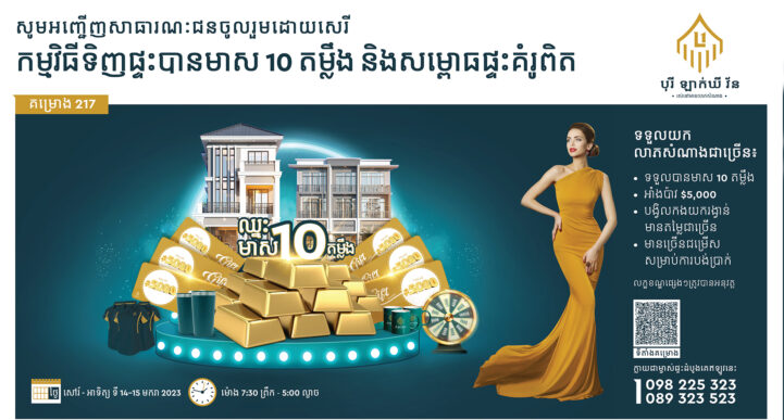 ថ្មីៗនេះ បុរី ឡាក់ឃី វ័ន គម្រោង217 បានប្តូររូបសញ្ញាឡូហ្គោរបស់ខ្លួនជាមួយនឹងរូបរាងថ្មីទាំងស្រុង។ ចំណែកពាក្យស្លោកក៏បានប្តូរទៅជា «ការរស់នៅមានលាភសំណាង» ដែលមានន័យថា ជាការបន្ថែមនូវលាភសំណាងជូនអតិថិជន លើសពីការរស់នៅធម្មតា។ ការរស់នៅដែលមានភាពសុខដុមរមនានៃក្រុមគ្រួសារ គឺនៅក្នុងផ្ទះមួយដែលមានការរចនាយ៉ាងល្អប្រកបដោយប្រណិតភាពដ៏អស្ចារ្យបំផុតសម្រាប់ការរស់នៅ និងមានលាភសំណាង។ ការផ្លាស់ប្តូររូបរាងថ្មីនៃរូបសញ្ញាឡូហ្គោនេះ គឺមានការចាប់អារម្មណ៍យ៉ាងខ្លាំងពីមហាជនជាច្រើន ហើយស្របពេលគ្នានេះដែរ បុរី ឡាក់ឃី វ័ន គម្រោង217 នឹងបើកសម្ពោធផ្ទះគំរូពិត នៅក្នុង «កម្មវិធីទិញផ្ទះបានមាស 10 តម្លឹង» ដែលផ្តល់ជូនលាភសំណាងជាច្រើនសន្ធឹកសន្ធាប់តាមរយៈប្រូម៉ូសិនដ៏អស្ចារ្យដូចជា៖ មាស 10 តម្លឹង អាំងប៉ាវ $5,000 បង្វិលកងយករង្វាន់មានតម្លៃជាច្រើន