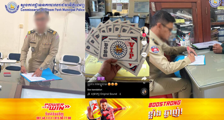 (ភ្នំពេញ)៖ ប្រតិកម្មរហ័សនៃស្នងការដ្ឋាននគរបាលរាជធានីភ្នំពេញ នៅរសៀលថ្ងៃទី២៦ ខែធ្នូ ឆ្នាំ២០២២ បានឱ្យដឹងថា មន្ត្រីប៉ុស្តិ៍នគរបាលរដ្ឋបាលទឹកថ្លាម្នាក់ដែលបានបង្ហោះសារលក់ផ្លាកចេញចូលអគ្គស្នងការនោះ ត្រូវបានសមត្ថកិច្ចនៃអធិការដ្ឋាននគរបាលខណ្ឌសែនសុខ បានធ្វើការណែនាំអប់រំ ធ្វើកិច្ចសន្យា និងដាក់វិន័យរដ្ឋបាល។ មន្ត្រីប៉ុស្តិ៍នគរបាលខាងលើនេះ បានបកស្រាយថាខ្លួនពិតជាបានបង្ហោះខ្លឹមសារខាងលើពិតប្រាកដមែន តែពុំមានចេតនាក្នុងការលក់ដូរអ្វីឡើយ គោលបំណងគឺផុសអួតដល់មិត្តភ័ក្ត្រដែលជាកងកម្លាំងដូចគ្នាតែប៉ុណ្ណោះ។ ខាងក្រោមនេះជាការបង្ហោះរបស់ស្នងការដ្ឋាននគរបាលរាជធានីភ្នំពេញ បានសរសេររៀបរាប់ថា៖ «សេចក្តីបកស្រាយបកបំភ្លឺរបស់ក្រុមការងារព័ត៌មាន និងប្រតិកម្មរហ័សនៃស្នងការដ្ឋាននគរបាលរាជធានីភ្នំពេញបន្ទាប់ពីបានឃើញវីដេអូបង្ហោះតាមបណ្តាញសង្គម Tik Tok ទាក់ទងទៅនឹងម្ចាស់គណនីឈ្មោះថា Tik Tok Fan Dy 9828 ជាមន្ត្រីប៉ុស្តិ៍នគរបាលរដ្ឋបាលទឹកថ្លា ដែលបានបង្ហោះខ្លឹមសារ «បងប្អូនត្រូវការផ្លាកចេញ-ចូលអគ្គស្នងការដ្ឋាននគរបាលជាតិ ឫ ក្រសួងមហាផ្ទៃ អាចមកទាក់ទងខ្ញុំបាន» កាលពីថ្ងៃទី២៤