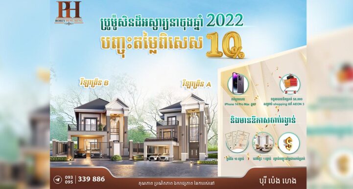 (ភ្នំពេញ)៖ ដើម្បីជាកាដូសម្រាប់ការគាំទ្រពីសំណាក់អតិថិជនកន្លងមក នៅដំណាច់ឆ្នាំ២០២២នេះ បុរី ប៉េង ហេង គម្រោងទី២ ផ្តល់ជូននូវកម្មវិធីយ៉ាងពិសេសមិនធ្លាប់មានពីមុនមកជាមួយកម្មវិធីបញ្ចុះតម្លៃយ៉ាងច្រើន រួមទាំងការផ្តល់ជូននូវកាដូយ៉ាងច្រើនសន្ធឹកសន្ធាប់។ រាល់អតិថិជនទាំងអស់ដែលទិញលំនៅដ្ឋានប្រណិត និងទំនើបទាន់សម័យក្នុងគម្រោងទី២ របស់បុរី ប៉េង ហេង នឹងទទួលបានការបញ្ចុះតម្លៃពិសេសរហូតដល់ ១០% ភ្លាមៗ ជាពិសេសក្រោយពេលកក់ប្រាក់នឹងទទួលបានកាដូយ៉ាងសន្ធឹកសន្ធាប់ដូចជា ទូរស័ព្ទដៃ iPhone 14 Pro Max មួយគ្រឿង រួមជាមួយនឹងកាតដែលមានទឹកប្រាក់ចាប់ពី $1,000 ដល់ $8,000 សម្រាប់ Shopping ដោយសេរីនៅផ្សារទំនើប AEON3 ដែលទើបបើកដំណើរការថ្មីៗនេះ។ បន្ថែមពីលើនេះទៅទៀត