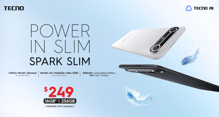 ថ្មីៗនេះក្រុមហ៊ុនស្មាតហ្វូន TECNO បានប្រកាសជាផ្លូវការនូវការនូវស្មាតហ្វូនថ្មីរបស់ខ្លួនគឺ TECNO SPARK Slim ដែលជាស្មាតហ្វូនអេក្រង់កោងស្តើងបំផុតលើពិភពលោក ដោយវាមានកម្រាស់ត្រឹមតែ 5.93mm ប៉ុណ្ណោះ។ ទោះជាកម្រាស់5.93mm តែ SPARK Slim នូវរក្សាទំហំថាមពលថ្មដ៏ធំ 5160mAh ជាមួយនឹងរូបរាងរឹងមាំបំផុតដែលបានឆ្លងកាត់ការបញ្ជាក់វិញ្ញាបនប័ត្រ ការពារធ្លាក់ និងធន់កម្រិតយោធាដើម្បីធានានូវភាពធន់។ ស្មាតហ្វូននេះនៅតែបន្តជាមួយនឹងលក្ខណៈពិសេសធ្វើឡើងសម្រាប់យុវវ័យដែលអ្នកគាំទ្រសេរ៊ី SPARK។ ខ្នងក្រោយធ្វើឡើងពី Fiber Glass លំដាប់អវកាស (aerospace-grade fiberglass) ដែលធ្វើឱ្យស្មាតហ្វូននេះកាន់តែស្តើងនិងរឹងមាំខ្លាំង ជាមួយនឹងកញ្ចក់ កោង 3D ដ៏ប្រណិត និងតួខ្លួនទម្ងន់ស្រាលធានានូវអារម្មណ៍ងាយស្រួលកាន់ក្នុងដៃ។ ចំណុតពិសេមានការរចនាដ៏ទាក់ទាញជាមួយភ្លើងជូនដំណឹងMood