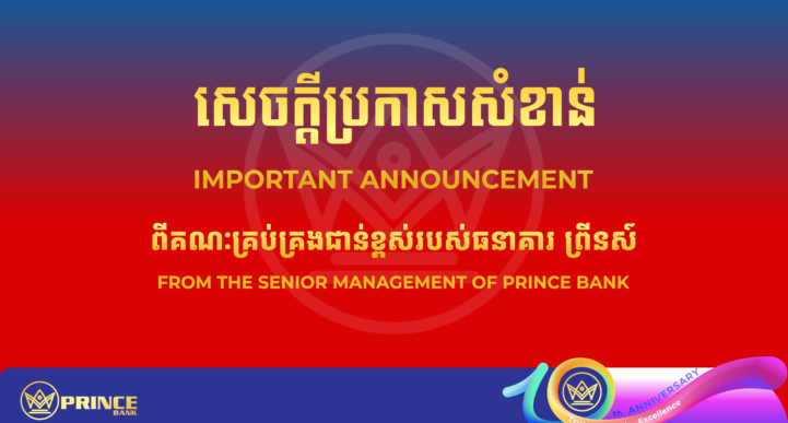 ធនាគារ ព្រីនស៍ ម.ក សូមជម្រាបជូនដល់អតិថិជន ដៃគូសហការ និងសាធារណជនទាំងអស់ជ្រាបថា ធនាគារនៅតែបន្តប្រតិបត្តិការយ៉ាងឯករាជ្យ ស្របច្បាប់ និងមានអាជ្ញាប័ណ្ណពេញលេញជាធនាគារពាណិជ្ជក្រោមការត្រួតពិនិត្យរបស់ធនាគារជាតិនៃកម្ពុជា (NBC)។ ប្រព័ន្ធអភិបាលកិច្ចសាជីវកម្មរបស់ធនាគារត្រូវបានបង្កើតឡើងយ៉ាងរឹងមាំ ស្របតាមស្តង់ដារព្រូដិនសលរបស់ធនាគារជាតិនៃកម្ពុជា ដោយផ្អែកលើគោលការណ៍នៃតម្លាភាព គណនេយ្យភាព និងសុចរិតភាពក្នុងការដឹកនាំ។ យោងតាមសេចក្ដីជូនដំណឹងថ្មីៗរបស់ការិយាល័យគ្រប់គ្រងទ្រព្យសកម្មបរទេស នៃក្រសួងរតនាគារសហរដ្ឋអាមេរិក (OFAC) ធនាគារ ព្រីនស៍ សូមបញ្ជាក់ថា៖ ធនាគារបន្តប្រតិបត្តិការយ៉ាងឯករាជ្យ៖ ធនាគារ ព្រីនស៍ បន្តដំណើរការជាធម្មតា ស្របតាមច្បាប់ និងបទប្បញ្ញត្តិរបស់ព្រះរាជាណាចក្រកម្ពុជា។ សកម្មភាពរបស់ ការិយាល័យគ្រប់គ្រងទ្រព្យសកម្មបរទេស នៃក្រសួងរតនាគារសហរដ្ឋអាមេរិក (OFAC) នឹងមិនប៉ះពាល់ដល់សមត្ថភាព និងប្រតិបត្តិការរបស់ធនាគារនៅក្នុងប្រទេសកម្ពុជាទេ។ ផលប៉ះពាល់អាចកើតមានលើដៃគូអន្តរជាតិមួយចំនួន៖