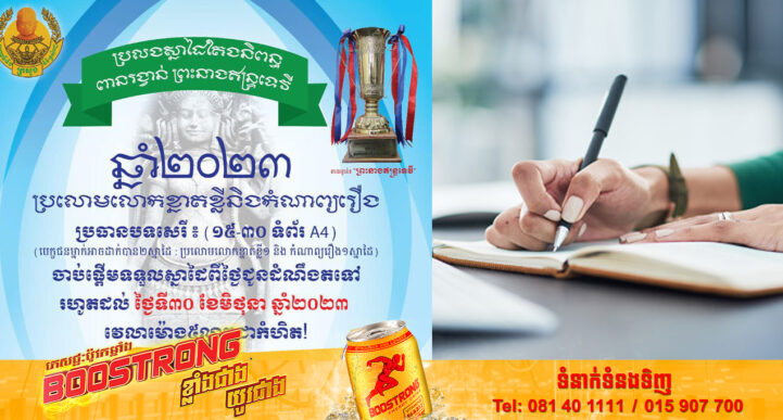 (ភ្នំពេញ)៖ ក្រសួងវប្បធម៌ និងវិចិត្រសិល្បៈ បានចេញសេចក្តីជូនដំណឹង ដល់កវីនិពន្ធ អ្នកនិពន្ធ និងសាធារណជនទាំងអស់ឱ្យបានជ្រាបថា ក្នុងគោលបំណងថែរក្សា លើកតម្កើង និងជំរុញវិស័យអក្សរសិល្ប៍ អក្សរសាស្ត្រជាតិឱ្យកាន់តែប្រសើរឡើងថែមទៀត ក្រសួងវប្បធម៌និងវិចិត្រសិល្បៈ នឹងរៀបចំប្រឡងជ្រើសរើសស្នាដៃតែងនិពន្ធពានរង្វាន់ព្រះនាងឥន្ទ្រទេវី ឆ្នាំ២០២៣។ កវីនិពន្ធ និងសាធារណជន ទាំងអស់ ដែលចូលចិត្ត ខាងការតែងនិពន្ធ គឺអាចដាក់ពាក្យ ដើម្បីចូលរួមប្រកួត ដោយគ្រាន់តែគោរព តាមលក្ខខណ្ឌ ដូចខាងក្រោម ៖ ១. ប្រធានបទ សេរី ផ្ទៃរឿងទាំងមូលត្រូវមានលក្ខណៈសមស្រប ទាំងអត្ថន័យ អត្ថរូប អត្ថរស ២. លក្ខខណ្ឌ