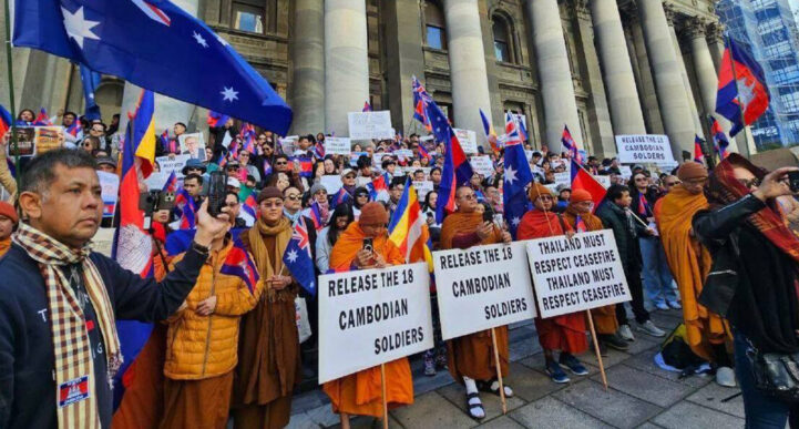 (ក្រុងអាឌឺឡែត)៖ យោងតាមការចុះផ្សាយរបស់ ក្រសួងព័ត៌មាន បានឱ្យដឹងថា រដ្ឋអូស្រ្តាលីខាងត្បូង ប្រទេសអូស្ត្រាលី នៅថ្ងៃអាទិត្យ ទី១៧ ខែសីហា ឆ្នាំ២០២៥ ព្រះសង្ឃ និងប្រជាពលរដ្ឋខ្មែរ រួមមានប្រមាណជាង ១ ០០០អង្គ/នាក់ បានជួបជុំគ្នាធ្វើបាតុកម្មប្រឆាំងនឹងទង្វើរំលោភកិច្ចព្រមព្រៀងបទឈប់បាញ់របស់ប្រទេសថៃ។ ជាមួយគ្នានេះ ប្រជាពលរដ្ឋកម្ពុជានៅទីក្រុងអាឌឺឡែត បានស្នើសុំឱ្យសហគមន៍អន្តរជាតិ ធ្វើអន្តរាគមន៍ឱ្យប្រទេសថៃគោរពបទឈប់បាញ់ និងដោះលែងកងទ័ពកម្ពុជាដោយឥតលក្ខខណ្ឌ។ ជាមួយគ្នានេះដែរ បងប្អូនសហគមន៍ខ្មែរ ក៏បានថ្លែងអំណរគុណ និងដឹងគុណយ៉ាងជ្រាលជ្រៅជូនចំពោះលោកប្រធានាធិបតី DONALD TRUMP ដែលបានជួយដឹកនាំសម្របសម្រួល ដើម្បីឱ្យមានបទឈប់បាញ់ភ្លាមៗ និងគ្មានលក្ខខណ្ឌរវាងកងកម្លាំងយោធាកម្ពុជា និងថៃដើម្បីសន្តិភាព និងស្នើដល់លោកប្រធានាធិបតី បន្តតាមដានសភាពការណ៍ នៃបទឈប់បាញ់