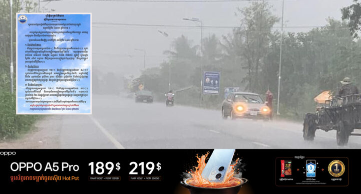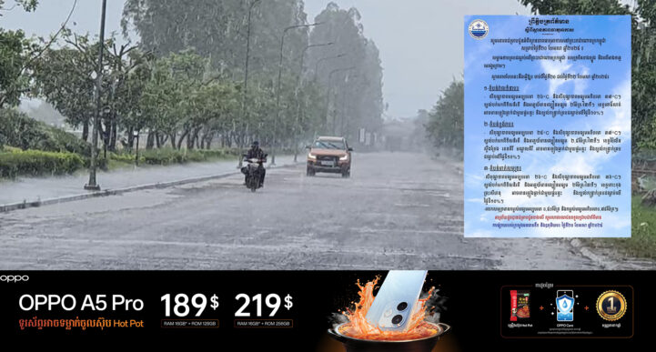 (ភ្នំពេញ)៖ ក្រសួងធនធានទឹក និងឧតុនិយម បានចេញសេចក្តីជូនដំណឹង អំពីស្ថានភាពធាតុអាកាសនៅកម្ពុជា សម្រាប់ថ្ងៃទី៦ ខែមេសា ឆ្នាំ២០២៥។ របបខ្យល់មូសុងឦសានជាមួយសម្ពាធទាបគ្របដណ្តប់លើសមុទ្រចិនខាងត្បូង អាងទន្លេមេគង្គក្រោម និងលើព្រះរាជាណាចក្រកម្ពុជា។ ស្ថានភាពបែបនេះនឹងធ្វើឱ្យចាប់ពីថ្ងៃទី៦ ដល់ថ្ងៃទី៨ ខែមេសា ឆ្នាំ២០២៥។ ខាងក្រោមនេះ ជាសេចក្តីជូនដំណឹងរបស់ក្រសួងធនធានទឹក៖ ប្រភព៖ ក្រសួងធនធានទឹក និងឧតុនិយម/Ministry of Water Resources and Meteorology