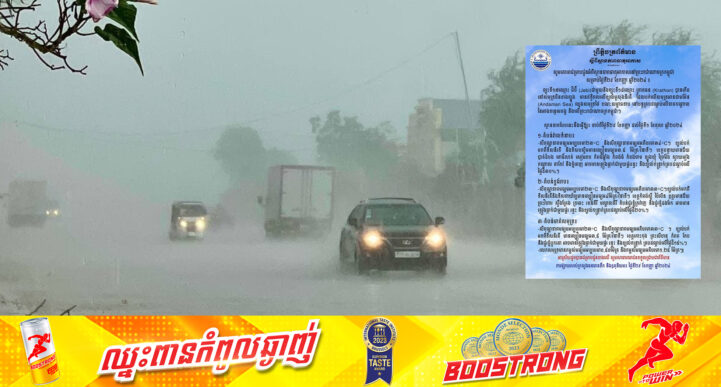 (ភ្នំពេញ)៖ នៅថ្ងៃទី២៩ ខែកញ្ញា ឆ្នាំ២០២៤ យោងតាមការព្យាករណ៍របស់ ក្រសួងធនធានទឹក និងឧតុនិយម បានឲ្យដឹងថា តំបន់ខ្ពង់រាប អាចមានភ្លៀងធ្លាក់ជាមួយផ្គរ រន្ទះ និងខ្យល់កន្ត្រាក់គ្របដណ្ដប់លើផ្ទៃដី ៣០%, តំបន់ខ្ពង់រាប គ្របដណ្ដប់លើផ្ទៃដី២០% និង តំបន់មាត់សមុទ្រ គ្របដណ្ដប់លើផ្ទៃដី១៥%។ ការប្រែប្រួលអាកាសធាតុដែលអាចមានភ្លៀងធ្លាក់នេះគឺអាស្រ័យដោយ ព្យុះទី១៧ឈ្មោះ ជីប៊ី (Jebi) ជាមួយនិងព្យុះទី១៨ឈ្មោះ ក្រាតធន (Krathon) បានកើតនៅសមុទ្រចិនខាងត្បូង មានឥទ្ធិពលលើខ្យល់មូសុងនិរតី ដែលបក់លើសមុទ្រអានដាមម៉ែន (Andaman Sea) ឈូងសមុទ្រថៃ ខណៈសម្ពាធទាប នៅបន្តគ្របដណ្តប់លើភាគកណ្តាលនៃអាងទន្លេមេគង្គនិងលើព្រះរាជាណាចក្រកម្ពុជា។ ស្ថានភាពបែបនេះចាប់ពីថ្ងៃទី២៩