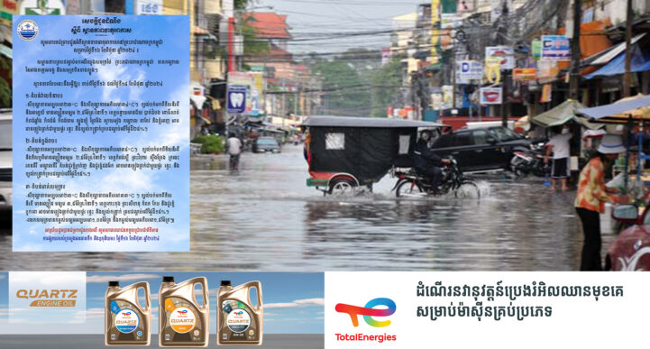 រាជធានីភ្នំពេញ៖ នៅថ្ងៃទី២៣ ខែមិថុនា ឆ្នាំ២០២៤ ក្រសួងធនធានទឹក និងឧតុនិយម បានចេញសេចក្ដីជូនដំណឹងស្ដីពី ស្ថានភាពធាតុអាកាសសម្រាប់ថ្ងៃទី២៣-២៥ ខែមិថុនា ឆ្នាំ២០២៤។ ក្រសួងធនធានទឹក បានឱ្យដឹងថា សម្ពាធទាបគ្របដណ្ដប់មកលើឈូងសមុទ្រថៃ ព្រះរាជាណាចក្រកម្ពុជា ភាគកណ្តាលនៃអាងទន្លេមេគង្គ និងសមុទ្រចិនខាងត្បូង។ ស្ថានភាពបែបនេះនឹងធ្វើឱ្យចាប់ពីថ្ងៃទី២៣ ដល់ថ្ងៃទី២៥ ខែមិថុនា ឆ្នាំ២០២៤៖ ១-តំបន់វាលទំនាប៖ -សីតុណ្ហភាពអប្បបរមា ២៣°C និងសីតុណ្ហភាពអតិបរមា ៣៣°C ។ ខ្យល់បក់មកពីទិសនិរតី និងទិសបស្ចឹម មានល្បឿនមធ្យម ៣,០០ម៉ែត្រ/វិនាទី។ ខេត្តបន្ទាយមានជ័យ បាត់ដំបង ពោធិ៍សាត់ កំពង់ឆ្នាំង