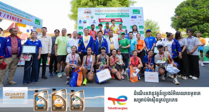 (ភ្នំពេញ)៖ នៅព្រឹកថ្ងៃទី១៦ ខែមិថុនា ឆ្នាំ២០២៤ ទិវារត់ប្រណាំងអន្តរជាតិពាក់កណ្តាលម៉ារ៉ាតុងភ្នំពេញ លើកទី១២ ឆ្នាំ២០២៤ បានបញ្ចប់ដោយស្នាមញញឹម និងជោគជ័យ នៅមុខព្រះបរមរាជវាំងត្រូវដោយទាក់ទាញបានកីឡាករ កីឡាការិនីជាតិ-អន្តរជាតិសរុប ចំនួន ៤១១០នាក់ មកពី៥៧ប្រទេស ដើម្បីអបអរសាទរបុណ្យចម្រើនព្រះជន្ម សម្តេចព្រះមហាក្សត្រី នរោត្តម មុនិនាថ សីហនុ ព្រះវររាជមាតាជាតិខ្មែរ និងស្វែងរកថវិកាសប្បុរសធម៌។ មុនឱកាសចេញដំណើរការ ឯកឧត្តមបណ្ឌិត ថោង ខុន ទេសរដ្ឋមន្ត្រីទទួលបន្ទុកបេសកកម្មពិសេស និងជាប្រធានគណៈកម្មាធិការជាតិអូឡាំពិកកម្ពុជា (NOCC) បានអញ្ជើញអត្តពលិកជាតិ-អន្តរជាតិ លើកដៃប្រណមដើម្បីថ្វាយនូវសព្ទសាធុការពរ ក្នុងព្រះរាជពិធីបុណ្យចម្រើនព្រះជន្ម សម្តេចព្រះមហាក្សត្រី នរោត្តម មុនិនាថ