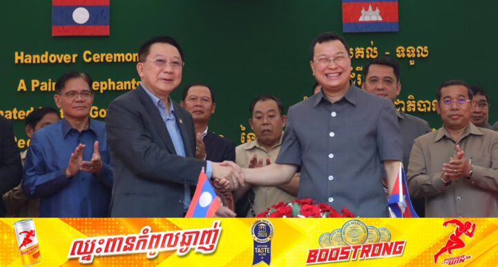 (តាកែវ)៖ នៅថ្ងៃទី១២ ខែឧសភា ឆ្នាំ២០២៤ យោងតាមការចុះផ្សាយរបស់ ក្រសួងព័ត៌មាន បានឱ្យដឹងថា កម្ពុជា បានរៀបចំពិធីប្រគល់-ទទួល សត្វដំរីមួយគូ ដែលជាអំណោយរបស់រដ្ឋាភិបាលឡាវ នៅឧទ្យានសួនសត្វ «ភ្នំតាម៉ៅ» នៅខេត្តតាកែវ។ បានបន្ថែមផងដែរថា ឯកឧត្តម ឌិត ទីណា រដ្ឋមន្ត្រីក្រសួងកសិកម្ម រុក្ខាប្រមាញ់ និងនេសាទ នៃព្រះរាជាណាចក្រកម្ពុជា និងឯកឧត្តម Linkham DOUANGSAVANH រដ្ឋមន្ត្រីក្រសួងកសិកម្ម និងព្រៃឈើ នៃសាធារណរដ្ឋប្រជាធិបតេយ្យប្រជាមានិតឡាវ អញ្ជើញជាអធិបតី និងចុះហត្ថលេខា ស្តីពីការប្រគល់ និងទទួល សត្វដំរី មួយគូ