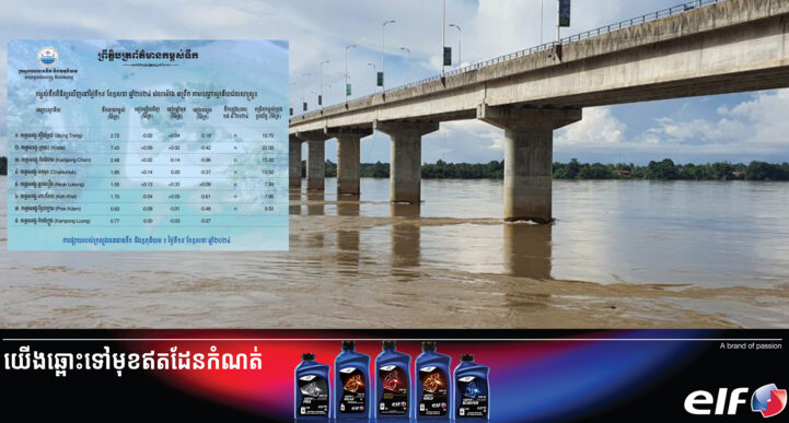 (ភ្នំពេញ)៖ នៅថ្ងៃទី១៩ ខែឧសភា ឆ្នាំ២០២៤ យោងតាមនាយកដ្ឋានជលសាស្ត្រ និងការងារទន្លេ បានឱ្យដឹងថា ការវាស់កំពស់ទឹកនៅទន្លេមេគង្គ-ចតុមុខ ឃើញមានការឡើងកំពស់ចំនួន ០,១៤ម៉ែត្រ ខណៈដែលស្ថាននីយជលសាស្ត្រផ្សេងៗទៀតបានថយចុះ។ ការឡើងកំពស់នេះបានធ្វើអោយកំពស់ទឹកនៅចតុមុខ ឡើងដល់ ១,៨៥ម៉ែត្រ។ ដោយឡែកនៅស្ថាននីយជលសាស្ត្រ ផ្សេងៗទៀត និងមិនមានការកើនឡើងកំពស់ទឹកនោះទេ។ ដូចជា នៅស្ថាននីយជលសាស្ត្រ ទន្លេមេគង្គ-ស្ទឹងត្រែង បានថយកំពស់ចំនួន ០,០២ម៉ែត្រ ធ្វើអោយកំពស់ទឹកនៅសល់តែ ២,៧២ម៉ែត្រ ខណៈដែលនៅស្ថាននីយជលសាស្ត្រ ទន្លេមេគង្គ-កំពង់ហ្លួង នៅតែរក្សាកំពស់ ០,៧៧ម៉ែត្រដដែល៕ ប្រភព៖ ក្រសួងព័ត៌មាន