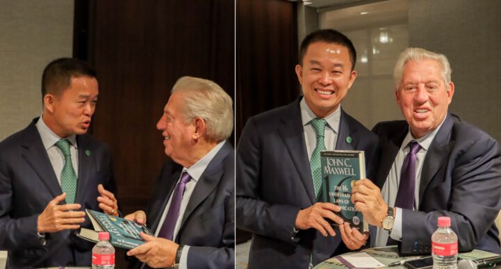 (ភ្នំពេញ)៖ ជាជំនួបដៃដន្យ និងកម្រ ដោយមិនបានព្រៀងទុក កាលពីថ្ងៃទី១០ ខែឧសភា ឆ្នាំ២០២៤ នៅសណ្ឋាគារ ហៃយ៉ាត់ រីជិនស៊ី ភ្នំពេញ អ្នកឧកញ៉ា លាង ម៉េង សហស្ថាបនិកក្រុមហ៊ុន ជីប ម៉ុង បានជួបសំណេះសំណាលពិភាភ្សា ផ្លាស់ប្ដូរយោបល់ ក៏ដូចជាបទពិសោធន៍នូវភាពជាអ្នកដឹកនាំ ជាមួយ លោកបណ្ឌិត ចន ស៊ី ម៉ាក់ស្វែល (John C. Maxwell) អ្នកនិពន្ធជនជាតិអាមេរិកដ៏ល្បីល្បាញ និងជាម្ចាស់ស្នាដៃ សៀវភៅលក់ដាច់បំផុតមួយ ពាសពេញពិភពលោក គឺសៀវភៅ «The