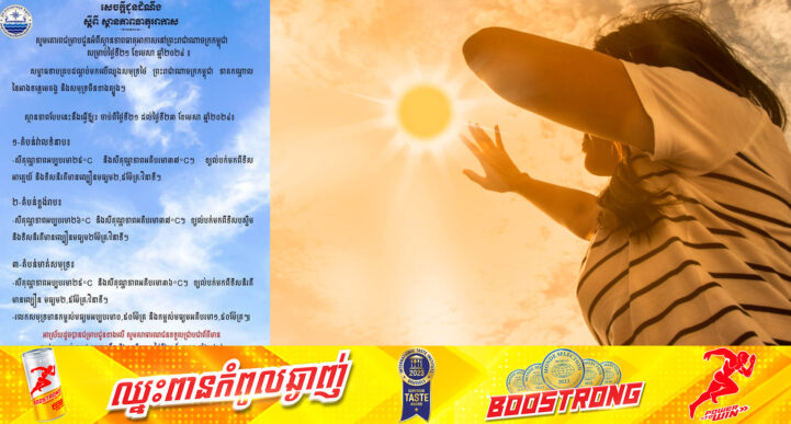 April 21, 2024 - ព័ត៌មានជាតិក្រសួងសុខាភិបាល បានចេញសេចក្តីជូនព័ត៌មាន ស្តីពីការប្រុងប្រយ័ត្នការពារសុខភាពក្នុងអំឡុងពេលអាកាសធាតុក្តៅ