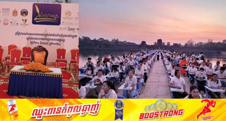 (សៀមរាប)៖ នាព្រឹកថ្ងៃទី២១ ខែមករា ឆ្នាំ២០២៤ យោងតាមការចុះផ្សាយរបស់ អគ្គនាយកដ្ឋានព័ត៌មាន និងសោតទស្សន៍ បានឱ្យដឹងថា មានបេក្ខជនប្រមាណជិត៦០០នាក់ បាននឹងកំពុងប្រឡងក្នុងព្រឹត្តិការណ៍សរសេរតាមអានថ្នាក់ជាតិលើកដំបូងនៅកម្ពុជា នៅស្ពានហាលខាងលិចប្រាសាទអង្គរវត្ត ខេត្តសៀមរាប៕ ប្រភព៖ អគ្គនាយកដ្ឋានព័ត៌មាន និងសោតទស្សន៍