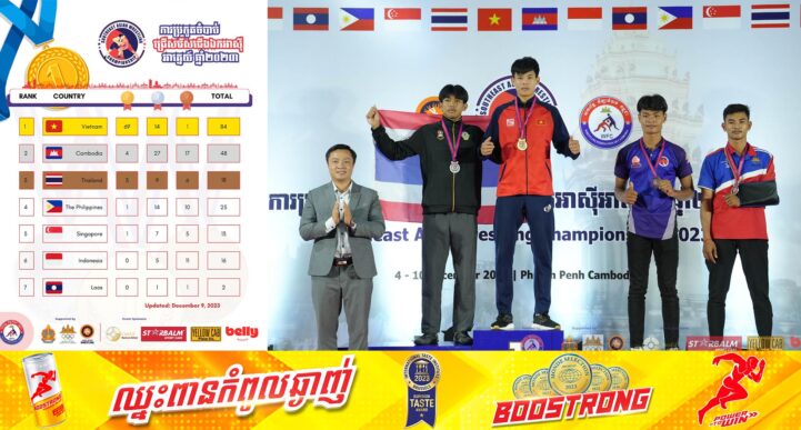 (ភ្នំពេញ)៖ នៅថ្ងៃទី១០ ខែធ្នូ ឆ្នាំ២០២៣ យោងតាមការចុះផ្សាយរបស់ សហព័ន្ធកីឡាចំបាប់កម្ពុជា បានឱ្យដឹងថា “ព្រឹត្តិការណ៍ ការប្រកួតជ្រើសរើសជើងឯកអាស៊ីអាគ្នេយ៍ ចាប់ពីថ្ងៃទី០៤ ដល់ ទី០៩ ខែធ្នូ ឆ្នាំ២០២៣ នៅក្នុងពហុកីឡាដ្ឋានជាតិអូឡាំពិក បានបញ្ចប់ការប្រកួតវគ្គផ្ដាច់ព្រ័ត្រកាលពីម៉ោង៤ល្ងាចម្សិលមិញ ដោយកម្ពុជាស្ថិតក្នុងចំណាត់ថ្នាក់លេខពីរនៃតារាងមេដាយសរុប”។ ចំពោះលទ្ធផលបច្ចេកទេស នៃការប្រកួតកីឡាចំបាប់ជើងឯកអាស៊ាន ឆ្នាំ២០២៣ ដែលមានកម្រិតយុវជនអាយុក្រោម ១៧ឆ្នាំ, អាយុក្រោម ២០ឆ្នាំ និងក្រុមពេញវ័យខាងលើ គឺវៀតណាម ដណ្ដើមបានមេដាយច្រើនជាងគេសរុប ៨៤គ្រឿង (មាស ៦៩, ប្រាក់ ១៤ និងសំរឹទ្ធ ១)
