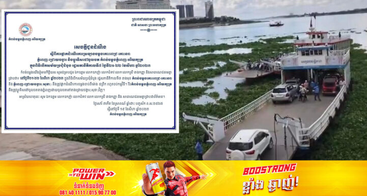 (ភ្នំពេញ)៖ យោងតាមការចុះផ្សាយរបស់ កំពង់ចម្លងភ្នំពេញ-អរិយក្សត្រ ស្ដីពីការផ្អាកដំណើរការស្រឡាងចម្លងកោះពេជ្រ-កោះនរា ភ្នំពេញ-ជ្រោយចង្វារ និងប្ដូរទិសដៅចូលចត កំពង់ចម្លងភ្នំពេញ-អរិយក្សត្រ ក្នុងពិធីបើកសម័យប្រជុំដំបូង រដ្ឋសភានីតិកាលទី៧ ថ្ងៃទី២១-២២ ខែសីហា ឆ្នាំ២០២៣។ បានបន្ថែមទៀតថា កំពង់ចម្លងយើងខ្ញុំមានកិត្តិយស សូមជម្រាបជូន ឯកឧត្ដម លោកឧកញ៉ា លោកជំទាវ លោក លោកស្រី នាងកញ្ញា និងសាធារណៈជន មេត្ដាជ្រាបថា៖ នៅថ្ងៃទី២១-២២ ខែសីហា ឆ្នាំ២០២៣ ក្នុងពិធីបើកសម័យប្រជុំដំបូង រដ្ឋសភានីតិកាលទី៧ ខាងមុខ កំពង់ចម្លងកោះពេជ្រ-កោះនរា និងភ្នំពេញ-ជ្រោយចង្វារ(សុខា) នឹងត្រូវផ្អាកដំណើរការចម្លងចាប់ពីម៉ោង ៥ព្រឹក រហូតចប់កម្មវិធី។