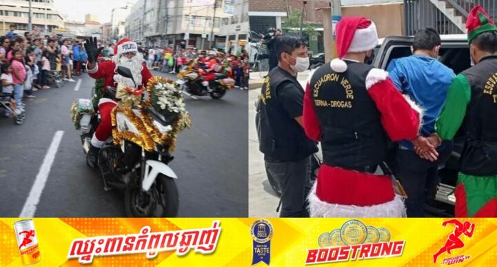 ប៉េរូ៖ នៅក្នុងថ្ងៃចន្ទ ទី២៥ ខែធ្នូនេះ នៅតាមបណ្តាប្រទេសជាច្រើនបាននាំគ្នាអបអរពិធីបុណ្យដ៏ធំមួយ គឺពិធីបុណ្យណូអែល (Christmas) ដែលជាពិធីបុណ្យរំលឹកដល់ថ្ងៃចាប់កំណើតរបស់ព្រះយេស៊ូគ្រីស្ត។ តាមធម្មតានៅក្នុងការអបអរពិធីបុណ្យប្រចាំឆ្នាំមួយនេះមានបុរសមួយចំនួនបានតែងខ្លួនជាលោកតា Santa Claus ឬអ្នកខ្លះហៅថា លោកឪពុកណូអែលដើរចែកអំណោយផ្សេងៗដល់មុខផ្ទះរបស់ប្រជាពលរដ្ឋនៅតាមសហគមន៍តែម្តង។ យ៉ាងណាក្តី សម្រាប់អាជ្ញាធរនៃប្រទេសប៉េរូឯណោះវិញបានមើលឃើញថា ការអបអរពិធីបុណ្យណូអែលតាមរបៀបដូចដែលបានជម្រាបជូនខាងលើនេះក៏ជាឱកាសល្អមួយដែលអាជ្ញាធរអាចប្រើប្រាស់ប៉ូលិសជំនាញចុះទៅបំបែកសំណុំរឿងខុសច្បាប់មួយចំនួននៅតាមសហគមន៍ដែលមានលក្ខណៈបែបអនាធិបតេយ្យផងដែរ។ ជាក់ស្តែងយោងតាមការចុះផ្សាយរបស់បណ្តាញសារព័ត៌មាន The Strait Time នៅក្នុងថ្ងៃទី ២៥ ខែធ្នូនេះបានឲ្យដឹងថា អាជ្ញាធរប៉េរូបានប្រើប៉ូលិសជំនាញម្នាក់ឲ្យស្លៀកពាក់ជាលោកតា Santa Claus ចុះទៅចែកអំណោយនៅក្នុងតំបន់ Huaral នៃក្រុង Lima ដែលជាតំបន់មុខសញ្ញាចែកចាយគ្រឿងញៀនដ៏សកម្មមួយ ហើយនៅក្នុងប្រតិបត្តិការណ៍ពិសេសនេះប៉ូលិសប៉េរូក៏អាចឈានទៅដល់ការចាប់ខ្លួនមេខ្លោងចែកចាយគ្រឿងញៀនបានចំនួន ២នាក់ផងដែរ៕ អត្ថបទ៖ ភក្តី ប្រភព៖ The Strait
