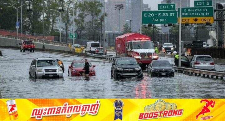 អាមេរិក៖ ទីក្រុងញូវញ៉ក សហរដ្ឋអាមេរិកបានប្រឈមនឹងបញ្ហាភ្លៀងធ្លាក់ក្នុងកម្រិតដ៏ខ្លាំងបំផុតមួយ នេះបើយោងតាមការចុះផ្សាយរបស់បណ្តាញសារព័ត៌មាន The Strait Time នៅក្នុងថ្ងៃសៅរ៍ ទី៣០ ខែកញ្ញានេះ។ ឥទ្ធិពលរបស់ទឹកភ្លៀងបានបង្កឲ្យមានទឹកជំនន់ជន់លិចតាមដងលូវសំខាន់ៗជាច្រើន ដែលបង្ខំឲ្យសកម្មភាពធ្វើដំណើរតាមផ្លូវសាធារណៈមួយចំនួន និងសកម្មភាពអាជីវកម្មមួយចំនួនត្រូវបានផ្អាក ខណៈសាលារៀនមួយចំនួនបានសម្រេចឲ្យក្មេងៗផ្អាកមកសាលាតែបន្តការសិក្សាតាមប្រព័ន្ធ Online។ បើតាមអាជ្ញាធរក្រុងញូវយ៉កបានបញ្ជាក់ថា កាលពីថ្ងៃម្សិលមិញនេះភ្លៀងបានធ្លាក់ក្នុងកម្រិតយ៉ាងខ្លាំងមិនធ្លាប់មាននោះទេបើគិតចាប់តាំងពីឆ្នាំ ១៨៨២មក ពោលគឺក្នុងរយៈពេល ១៤០ឆ្នាំចុងក្រោយនេះ។ បើតាមលោកស្រី Kathy Hochul អភិបាលក្រុងញូវយ៉ក ដែលបានសម្រេចទាញសញ្ញាអាសន្នបន្ទាន់ជុំវិញករណីភ្លៀងខាងលើនេះបានហៅហេតុការណ៍នេះថា ជា “ព្រឹត្តិការណ៍ភ្លៀងដែលអាចគំរាមគំហែងដល់អាយុជីវិត” ខណៈគិតត្រឹមពេលនេះឥទ្ធិពលរបស់ព្យុះភ្លៀងនៅមិនទាន់ថយចុះនៅឡើយទេ។ យ៉ាងណាក្តី ពុំទាន់មានរបាយការណ៍ណាមួយបង្ហាញថា មានជនរងគ្រោះថ្នាក់ឬអ្នកស្លាប់បាត់បង់ជីវិតនៅក្នុងហេតុការណ៍ដ៏កម្រនេះនៅឡើយទេ៕ អត្ថបទ៖ ភក្តី ប្រភព៖ The
