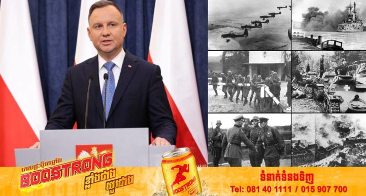ប៉ូឡូញ៖ យោងតាមការចុះផ្សាយរបស់បណ្តាញសារព័ត៌មាន Channel News Asia បានឲ្យដឹងថា ប្រធានាធិបតីនៃប្រទេសប៉ូឡូញលោក Andrzej Duda បានថ្លែងកាលពីថ្ងៃព្រហស្បតិ៍ ទី១ ខែសីហានេះថា ប៉ូឡូញបានខាតបង់ប្រាក់អស់ប្រមាណជា ៦,២ ពាន់ពាន់លានស្លូទី (១,៣២ ពាន់ពាន់លានដុល្លារអាមេរិក) ដោយសង្គ្រាមលោកលើកទី២ ដែលបានបង្កឡើងដោយប្រទេសអាឡឺម៉ង់។ លោកប្រធានាធិបតីវ័យ ៥០ឆ្នាំរូបនេះថែមទាំងបានបញ្ជាក់ទៀតថា ប៉ូឡូញនឹងទាមទារសំណងក្នុងទំហំទឹកប្រាក់ខាងលើនេះជាផ្លូវការពីប្រទេសអាឡឺម៉ង់ផងដែរ។ លោក Andrzej Duda ប្រធានាធិបតីនៃប្រទេសប៉ូឡូញ គួររម្លឹកជូនថា បញ្ហាចម្រូងចម្រាសខាងលើនេះមិនមែនជារឿងថ្មីឡើយសម្រាប់ប្រទេសប៉ូឡូញនិងប្រទេសអាឡឺម៉ង់ ដ្បិតកាលពីឆ្នាំ ២០១៥ ប៉ូឡូញក៏ធ្លាប់បាននិយាយអំពីការទាមទារសំណងនេះម្តងដែរ តែប៉ូឡូញមិនបានប្តឹងទាមទារសំណងជាលក្ខណៈផ្លូវការនោះទេ ខណៈភាគីខាងអាឡឺម៉ង់វិញធ្លាប់អះអាងជារឿញៗថា បញ្ហាទាក់ទាងនឹងប្រាក់សំណងនេះគឺត្រូវបានដោះស្រាយរួចអស់ហើយ។